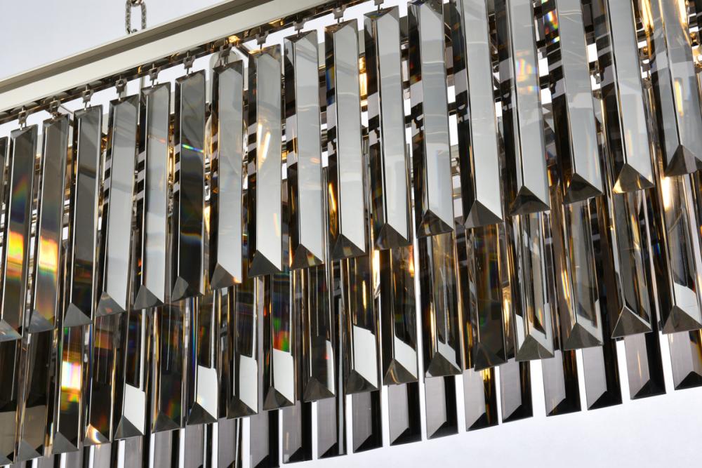 Bring the splendor of the ballroom into your home with a sparkling Sydney fixture. Stunning in foyers, dining rooms, or stairwells, the Sydney collection brings to mind the glamour of the Roaring Twenties. Features glimmering tiers of royal-cut clear, golden-teak, or Silver-shade crystals. In mocha-brown or polished-nickel finishes, this sturdy, yet delicate, pendant lamp will be the perfect centerpiece for any décor.