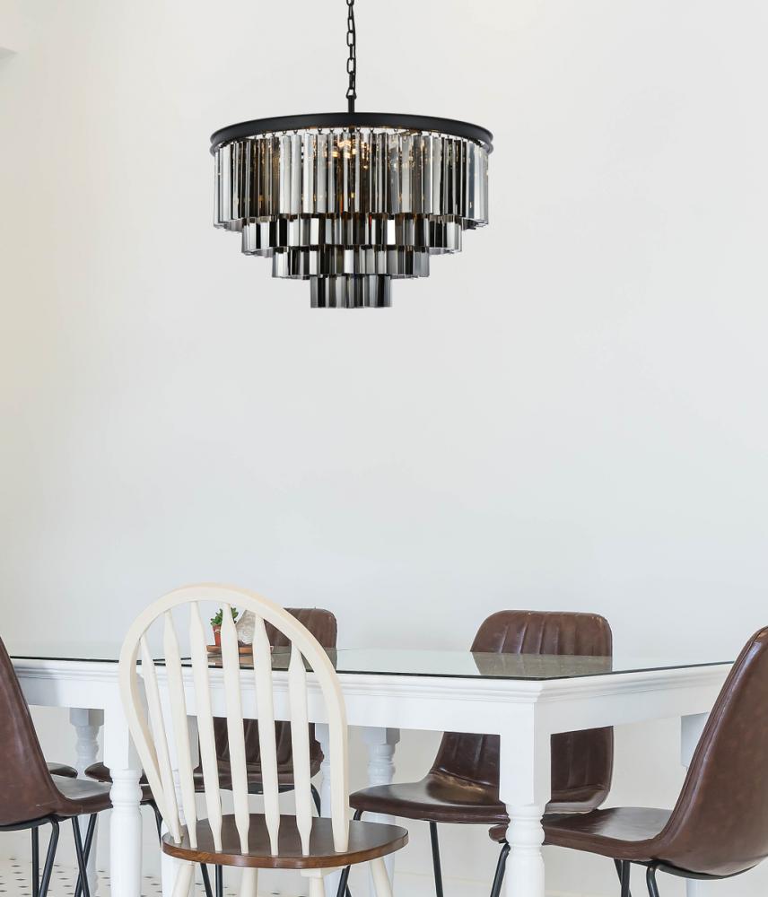 Bring the splendor of the ballroom into your home with a sparkling Sydney fixture. Stunning in foyers, dining rooms, or stairwells, the Sydney collection brings to mind the glamour of the Roaring Twenties. Features glimmering tiers of royal-cut clear, golden-teak, or Silver-shade crystals. In Matte Black or polished-nickel finishes, this sturdy, yet delicate, chandelier will be the perfect centerpiece for any décor.