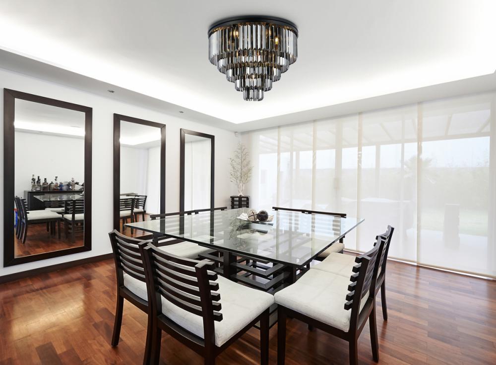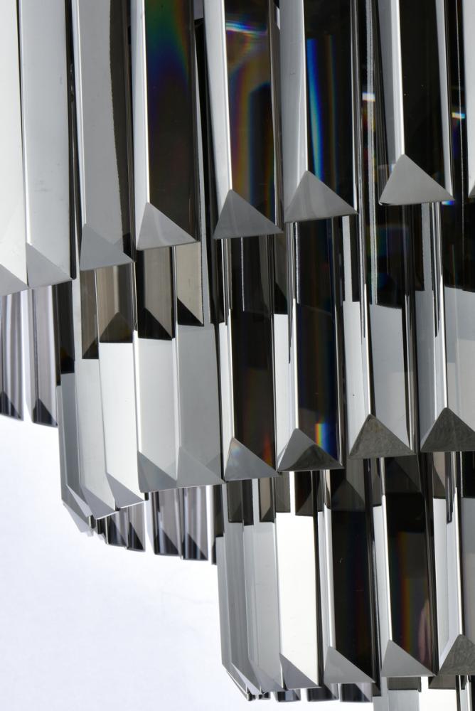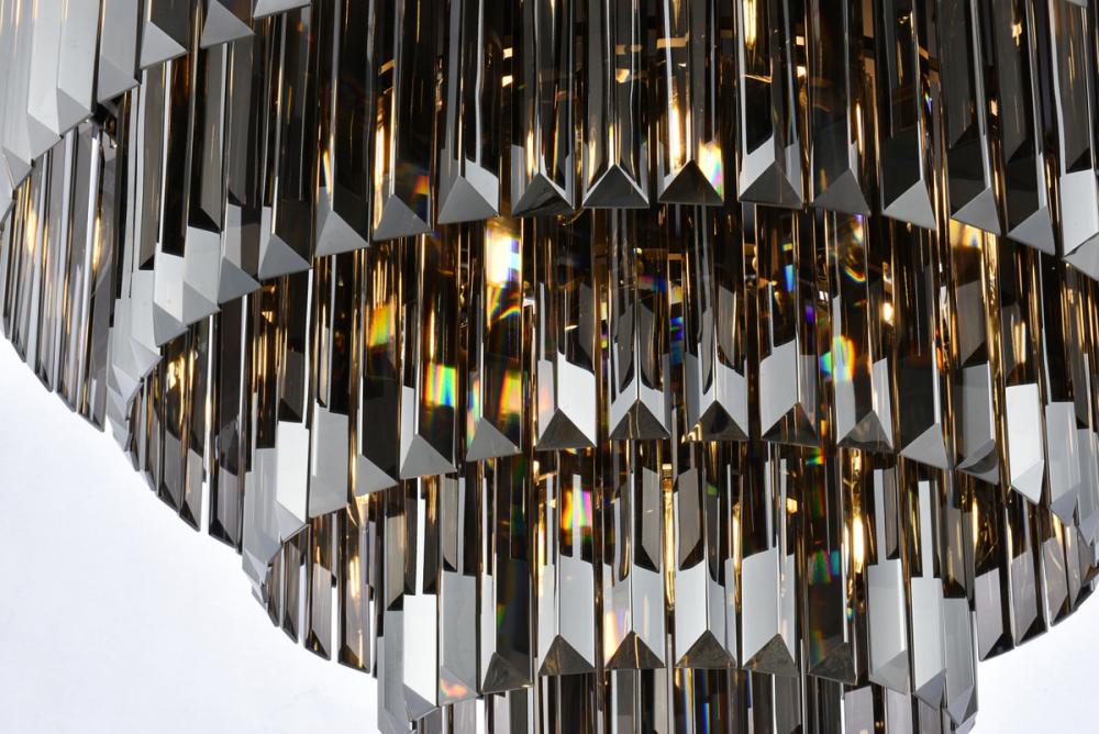 Timeless splendor and modern refinement are brought together in flush-mount Sydney fixtures. Dazzling in dining rooms, staircases, or hallways, the Sydney collection flaunts stunning tiers of royal-cut crystals in clear, golden teak, or Silver shade. A circular Matte Black or polished-nickel finished steel frame adds understated charm to this stunning flush-mount lamp.