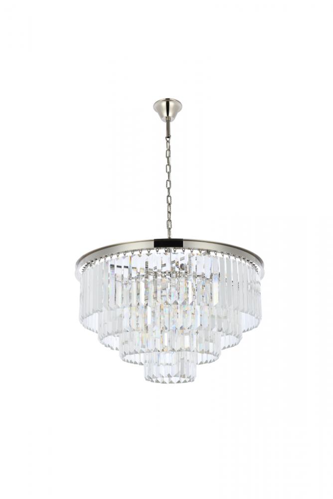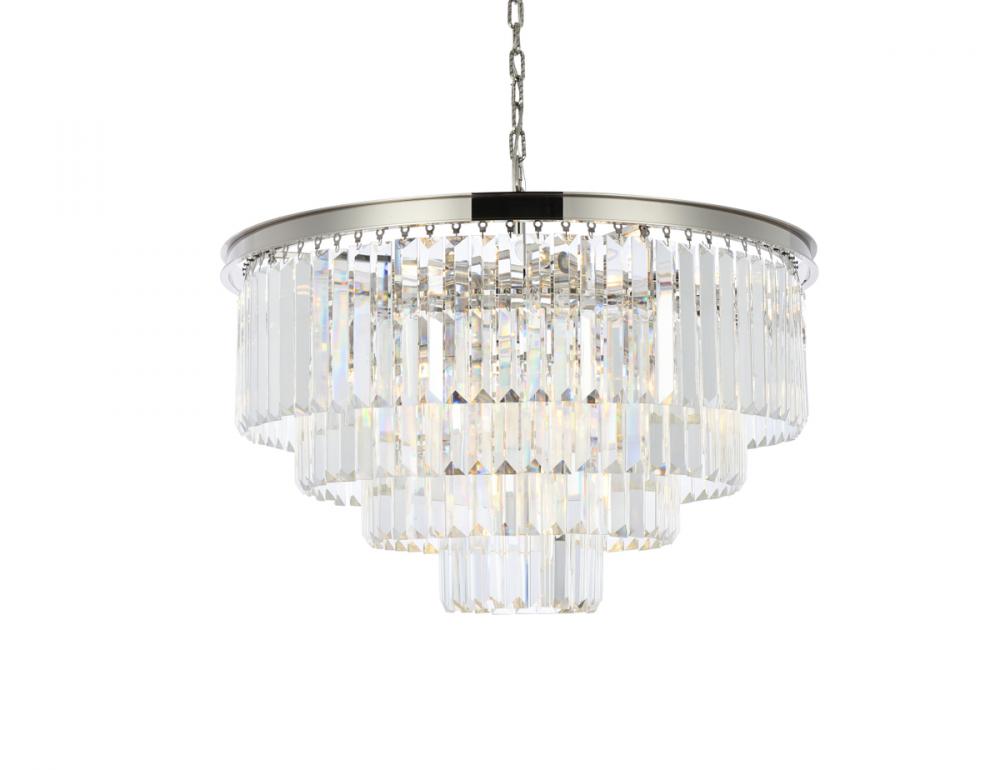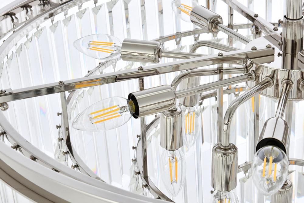 Bring the splendor of the ballroom into your home with a sparkling Sydney fixture. Stunning in foyers, dining rooms, or stairwells, the Sydney collection brings to mind the glamour of the Roaring Twenties. Features glimmering tiers of royal-cut clear, golden-teak, or Silver-shade crystals. In mocha-brown or polished-nickel finishes, this sturdy, yet delicate, chandelier will be the perfect centerpiece for any décor.