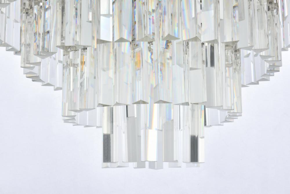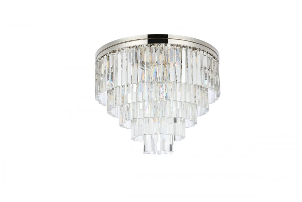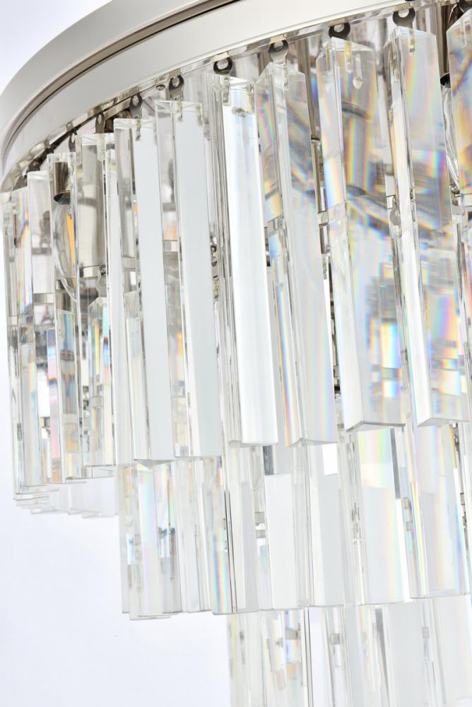 Timeless splendor and modern refinement are brought together in flush-mount Sydney fixtures. Dazzling in dining rooms, staircases, or hallways, the Sydney collection flaunts stunning tiers of royal-cut crystals in clear, golden teak, or Silver shade. A circular mocha-brown or polished-nickel finished steel frame adds understated charm to this stunning flush-mount lamp.