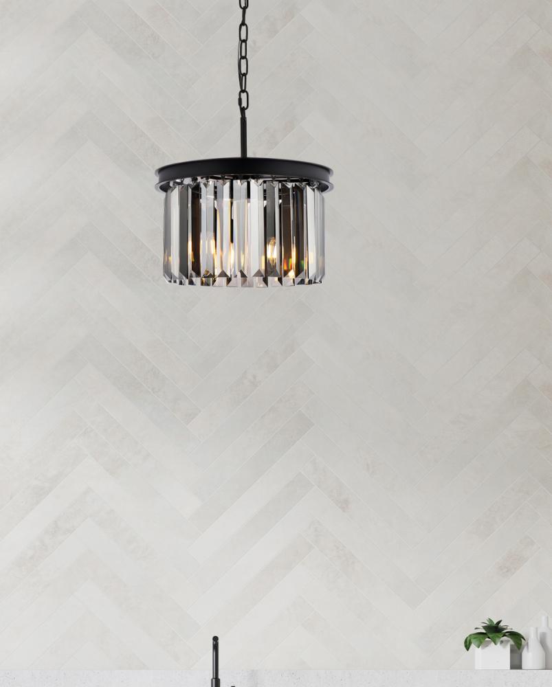 Bring the splendor of the ballroom into your home with a sparkling Sydney fixture. Stunning in foyers, dining rooms, or stairwells, the Sydney collection brings to mind the glamour of the Roaring Twenties. Features glimmering tiers of royal-cut clear, golden-teak, or Silver-shade crystals. In Matte Black or polished-nickel finishes, this sturdy, yet delicate, pendant lamp will be the perfect centerpiece for any décor.