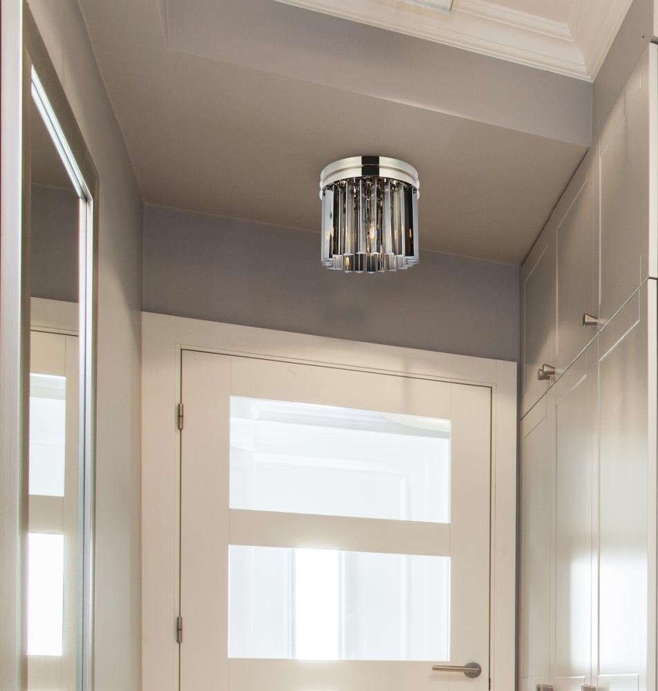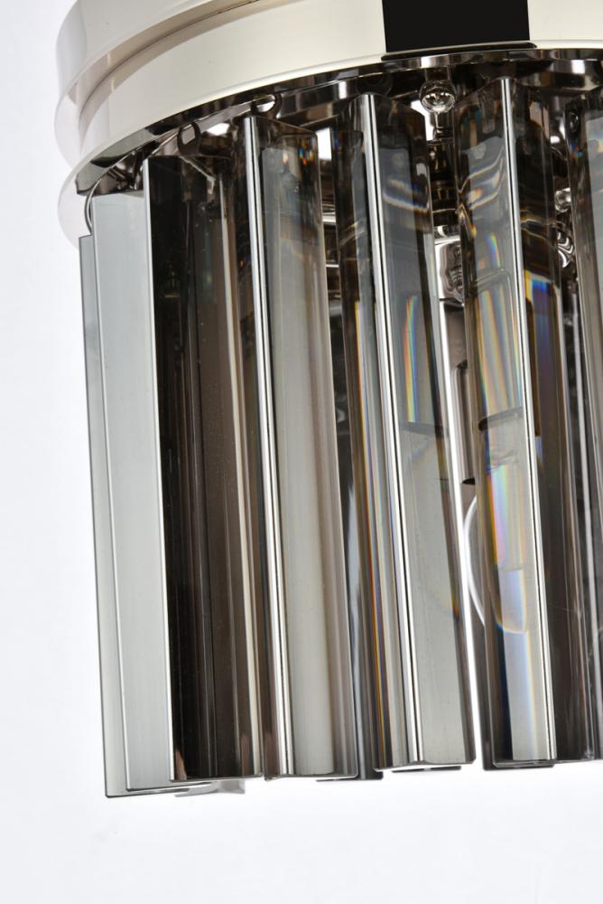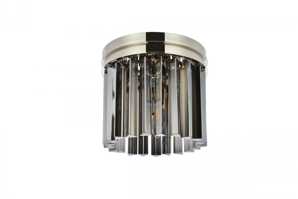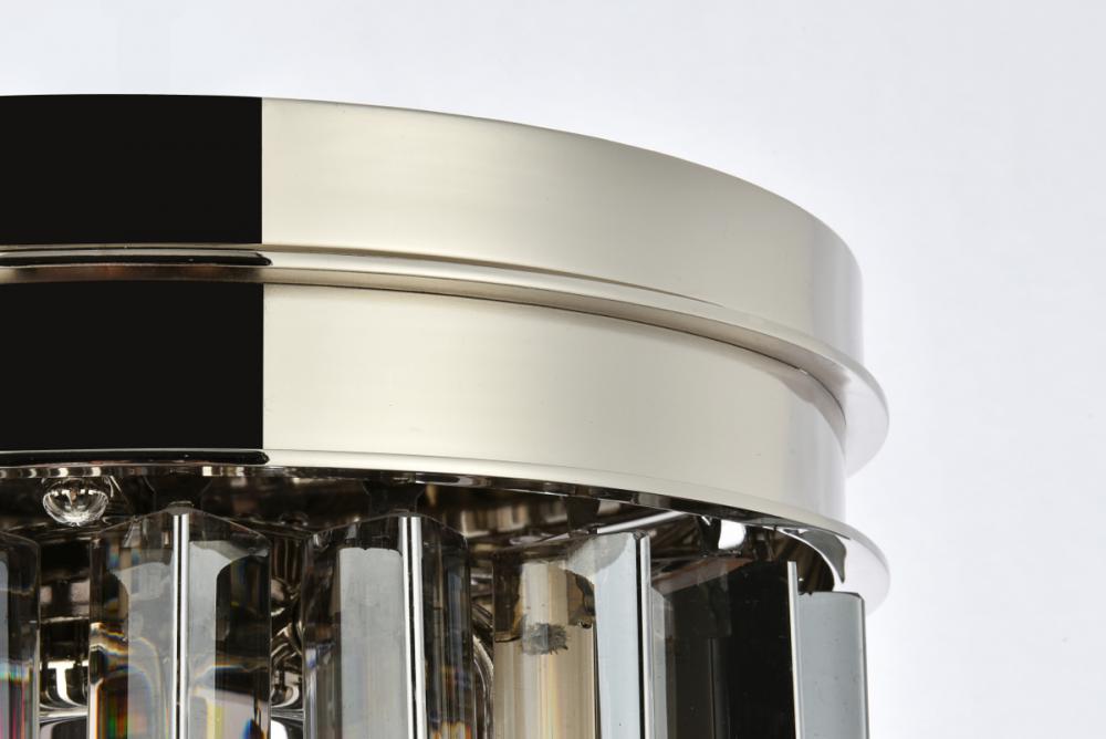 Timeless splendor and modern refinement are brought together in flush-mount Sydney fixtures. Dazzling in dining rooms, staircases, or hallways, the Sydney collection flaunts stunning tiers of royal-cut crystals in clear, golden teak, or Silver shade. A circular mocha-brown or polished-nickel finished steel frame adds understated charm to this stunning flush-mount lamp.
