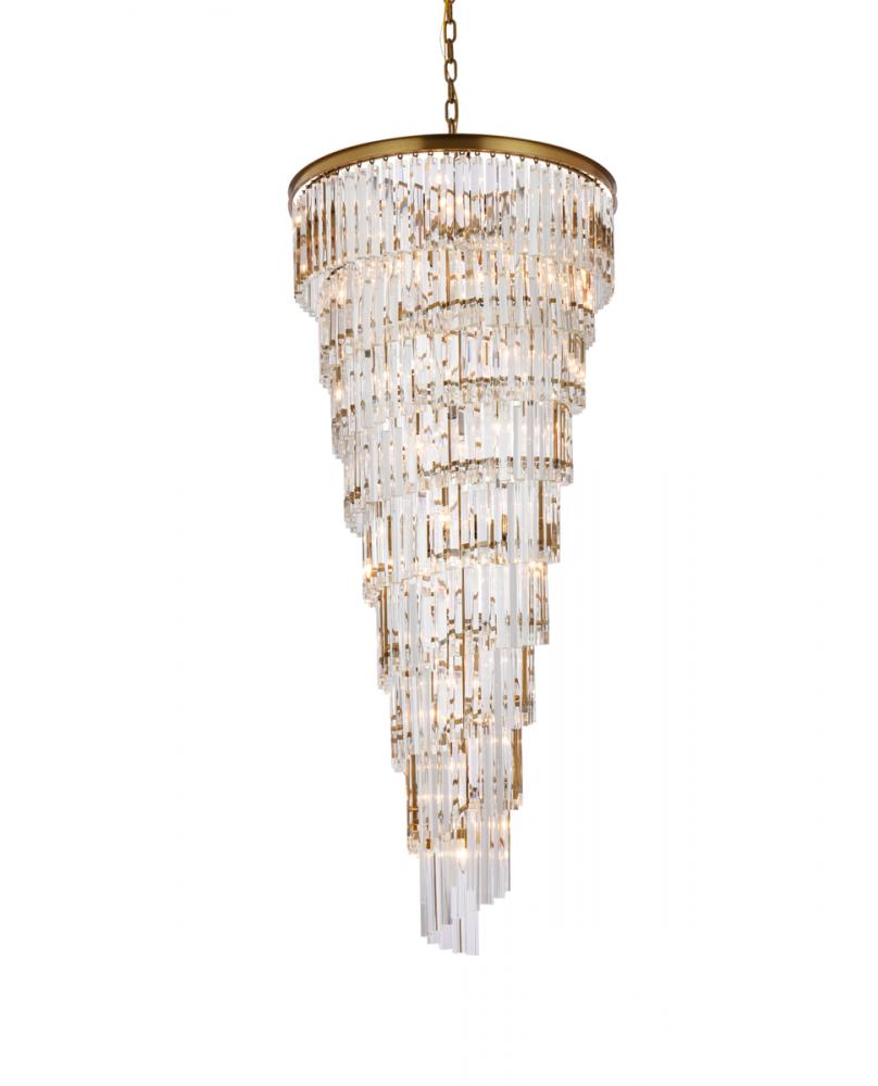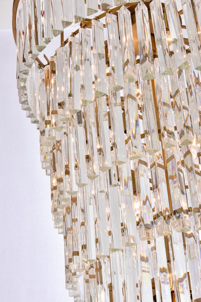 The chandelier features 3 tiers of triangular slender crystal rods, providing a stunning cascade of shimmering light and creating a sense of opulence.