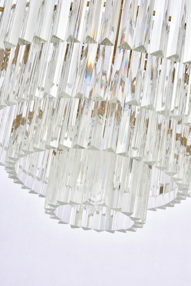 The round chandelier features 3 tiers of triangular slender crystal rods, providing a stunning cascade of shimmering light and creating a sense of opulence.
