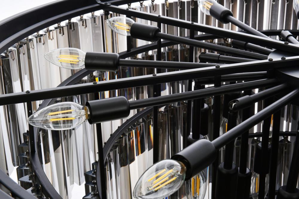 Lamp features a diameter of 44 inches, a height of 32 inches;requires 33 candelabra lights