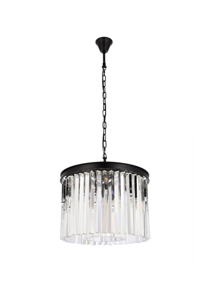 Bring the splendor of the ballroom into your home with a sparkling Sydney fixture. Stunning in foyers, dining rooms, or stairwells, the Sydney collection brings to mind the glamour of the Roaring Twenties. Features glimmering tiers of royal-cut clear, golden-teak, or Silver-shade crystals. In Matte Black or polished-nickel finishes, this sturdy, yet delicate, pendant lamp will be the perfect centerpiece for any décor.