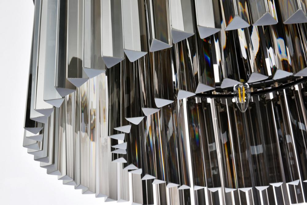 Timeless splendor and modern refinement are brought together in flush-mount Sydney fixtures. Dazzling in dining rooms, staircases, or hallways, the Sydney collection flaunts stunning tiers of royal-cut crystals in clear, golden teak, or Silver shade. A circular Matte Black or polished-nickel finished steel frame adds understated charm to this stunning flush-mount lamp.
