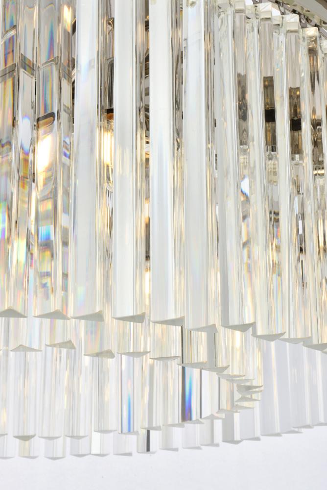 Bring the splendor of the ballroom into your home with a sparkling Sydney fixture. Stunning in foyers, dining rooms, or stairwells, the Sydney collection brings to mind the glamour of the Roaring Twenties. Features glimmering tiers of royal-cut clear, golden-teak, or Silver-shade crystals. In mocha-brown or polished-nickel finishes, this sturdy, yet delicate, chandelier will be the perfect centerpiece for any décor.