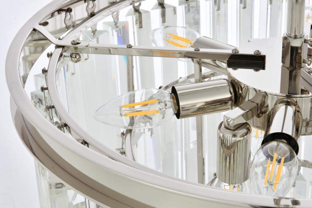 Lamp features a diameter of 20 inches, a height of 20.5 inches; requires 9 candelabra lights