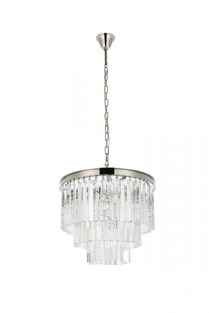 Bring the splendor of the ballroom into your home with a sparkling Sydney fixture. Stunning in foyers, dining rooms, or stairwells, the Sydney collection brings to mind the glamour of the Roaring Twenties. Features glimmering tiers of royal-cut clear, golden-teak, or Silver-shade crystals. In mocha-brown or polished-nickel finishes, this sturdy, yet delicate, pendant lamp will be the perfect centerpiece for any décor.