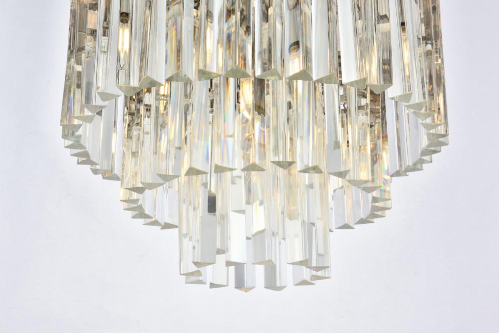 Lamp features a diameter of 20 inches, a height of 16 inches; requires 9 candelabra lights