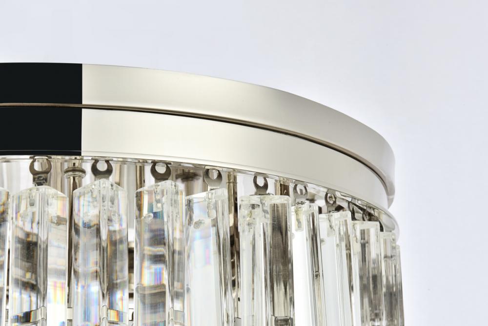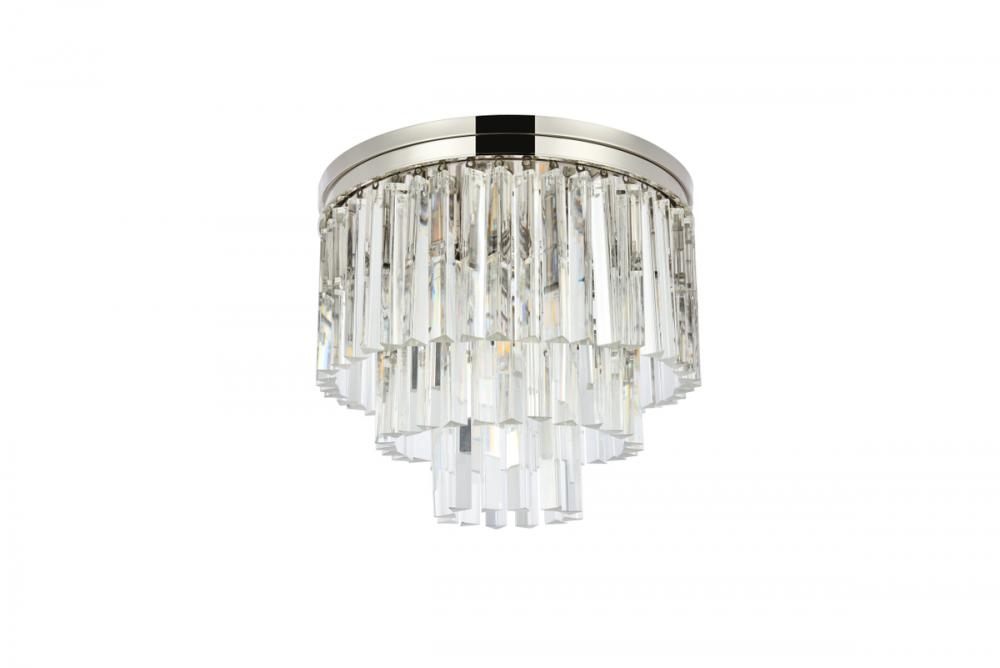 Timeless splendor and modern refinement are brought together in flush-mount Sydney fixtures. Dazzling in dining rooms, staircases, or hallways, the Sydney collection flaunts stunning tiers of royal-cut crystals in clear, golden teak, or Silver shade. A circular mocha-brown or polished-nickel finished steel frame adds understated charm to this stunning flush-mount lamp