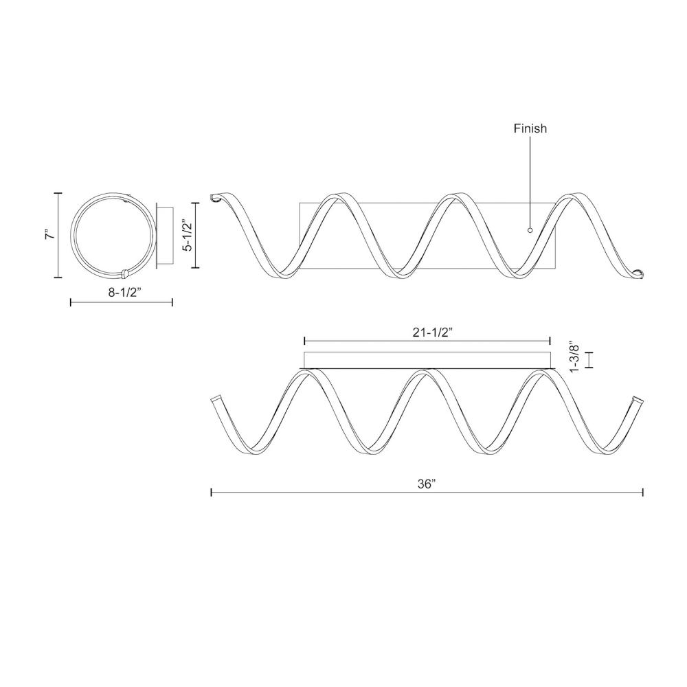 A looping radiant line casts light across space in a continuous helical path. The Synergy series is characterized by the rolled rectangular extrusion, which emits soft light through the silicon opal lens. Configured in both linear and ring arrangements, the arcing aluminum allows the curated finishes to be visible at every angle.