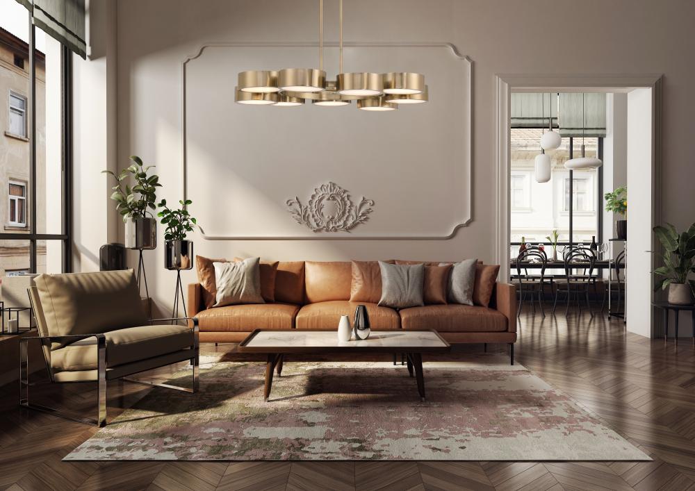 The Savoy House Talamanca 9-light chandelier is part of Moderne by Breegan Jane, bringing her signature approachable modern luxury style to your home. Breegan loves the timeless and elevating beauty of brass, as seen in this chic and sleek design. Integrated LED light sources are held inside round structures studding a central hoop, creating a clean look that is perfect for adding a big boost of light to a room. Finished in champagne-toned Noble Brass. Talamanca is 32" in width and has an adjustable height ranging from 4" to 60". Comes with eight 12" downrods and two 6" downrods.