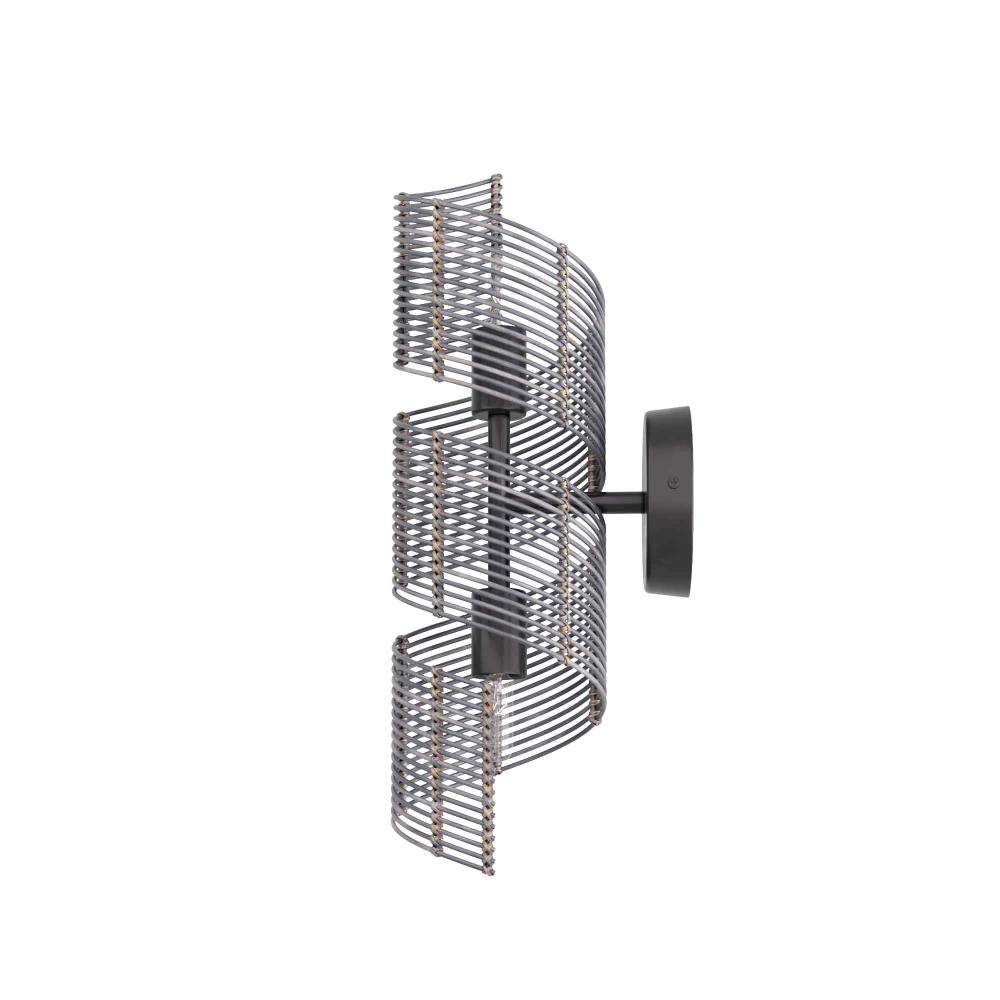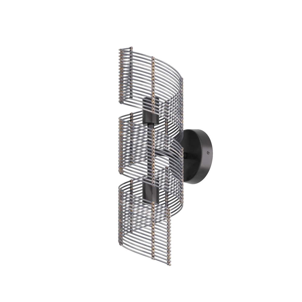 THE TAMARA SCONCE ADDS A LAYER OF TEXTURE AND MOVEMENT, WHILE PROVIDING SOFT ILLUMINATION. CRAFTED IN A SPIRALING RIBBON OF DARK GRAY-STAINED BURI MIDRIB, THE WALL LIGHT OFFERS AN ORGANIC MODERN TWIST. THE SCONCE IS FITTED WITH CANDLE HOLDER THAT HOLDS A CLEAR TUBULAR BULB ON EACH END, DIRECTING LIGHT ABOVE AND BELOW. FINISH WILL VARY.