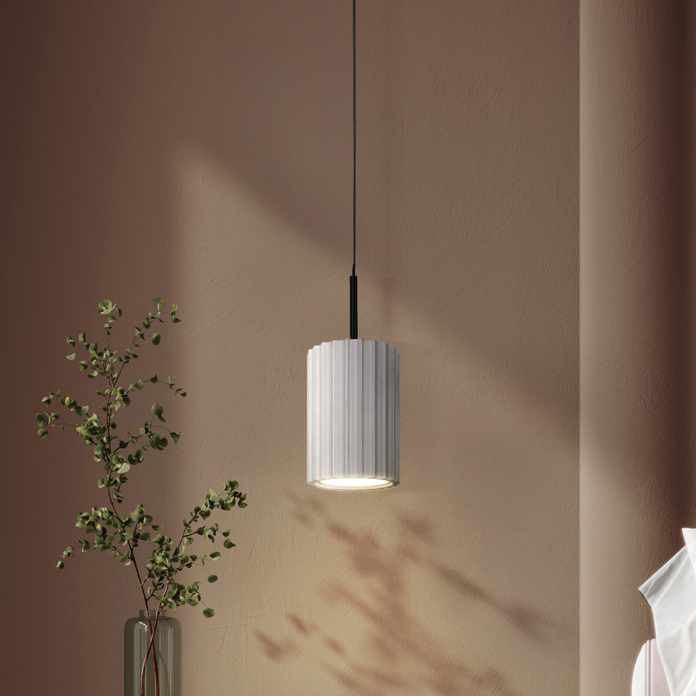 The TAVI pendant brings modern minimalism into harmony with wellness-inspired living. Its matte black frame contrasts with stone-coloured resin, creating a soothing palette that feels both grounded and refined. Slim and sculptural, the design evokes futuristic shapes while maintaining a light, airy presence that elevates dining areas, kitchens, or living spaces. An acrylic diffuser softens the glow, creating light that feels restorative yet purposeful. Powered by a 12W integrated LED, it delivers 500 lumens with a 3CCT switch offering warm 3000K, balanced 4000K, or crisp 5000K illumination to match your rhythm. With an adjustable height from 13.5 inches up to 73.5 inches, the TAVI pendant adapts gracefully to intimate nooks or soaring ceilings, blending sculptural simplicity with natural-inspired calm.
