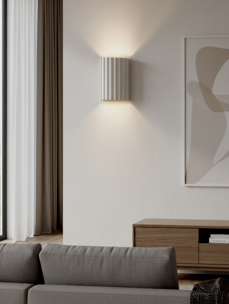 The TAVI wall sconce blends minimal design with modern elegance, offering a quietly luxurious glow that feels both grounding and elevated. Crafted from stone-colored resin and soft opal glass, its ribbed shade introduces futuristic sculptural lines while maintaining a soothing, earthy palette. The natural-inspired texture evokes wellness and balance, making it more than just lighting; it’s a calming presence in your home. An integrated LED with a 3CCT switch lets you shift between warm 3000K, balanced 4000K, or crisp 5000K illumination, adapting effortlessly to your rhythm. Compact yet striking at just 5.37 inches wide, TAVI’s wellness-driven design brings sculptural simplicity and a sense of serenity to hallways, bedrooms, and living spaces alike.