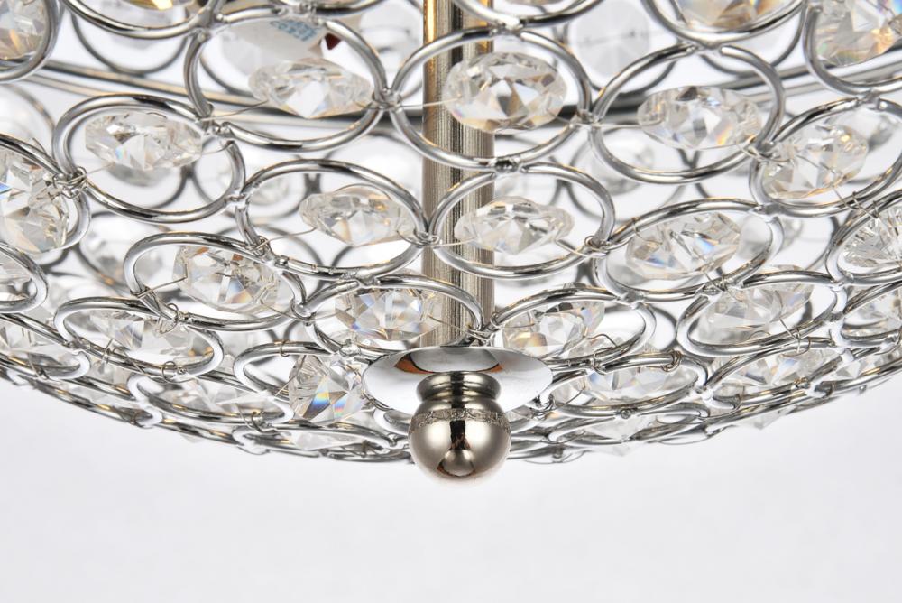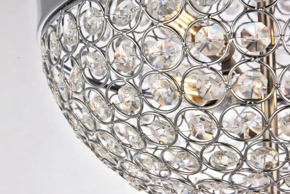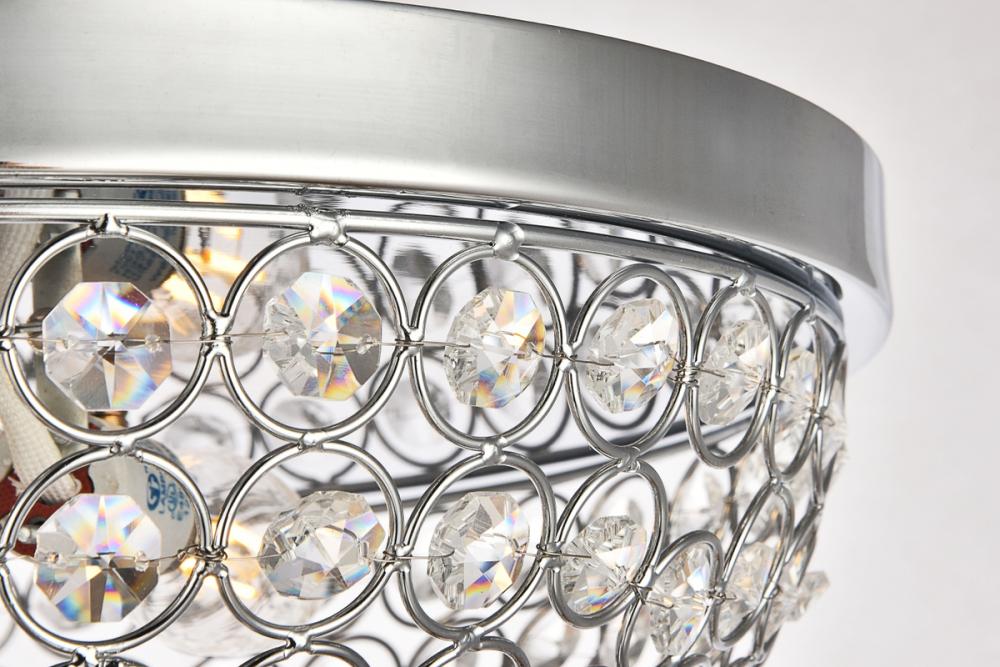 Taye collection flush mounts bring serious sparkle to a bedroom, bathroom or foyer with an intricate, yet understated design. A hemispherical cage-like frame features a central column and mounting plate in a bold Chrome finish. Suspended almost invisibly between the filigree-style wires, individual clear Crystal octagons shine. Light from hidden bulbs (Not included) is multiplied and refracted through the gorgeous Crystals, making this classic flush mount a brilliant choice.