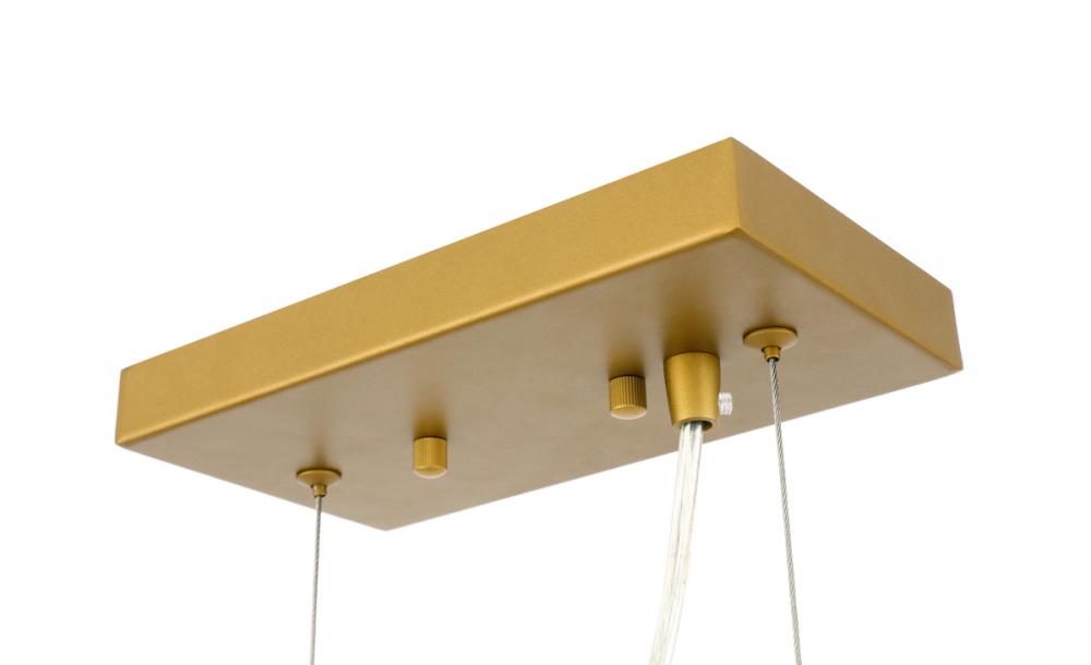 Elegant brass finish 3-light rectangular pendant with hanging strands of glimmering crystals; suspended from a rectangular canopy