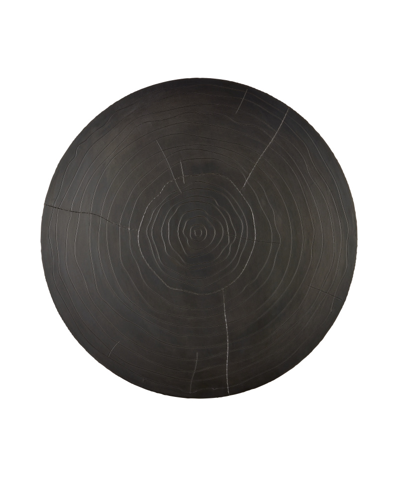 The Terra Cocktail Table convinces the eye it is made entirely from natural wood, when in fact its surface is metal that has been wrapped over a hand-carved wood substrate and pushed into place to amplify a natural grain pattern. Once the dynamic ornamentation has been fully achieved, the top columnar portion is bronzed while the inset base is made of brass that has been lightly texturized. This is a truly artisanal piece.