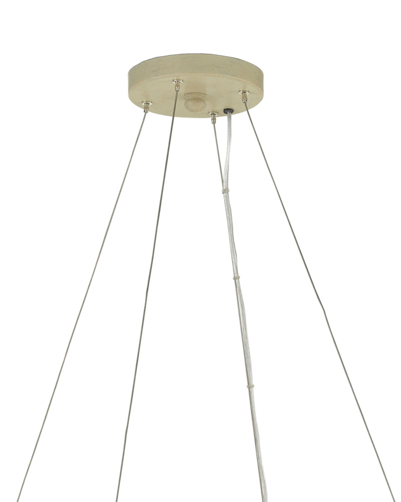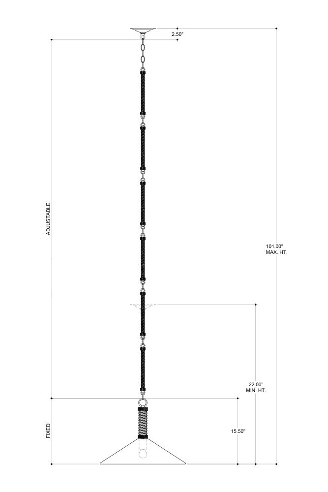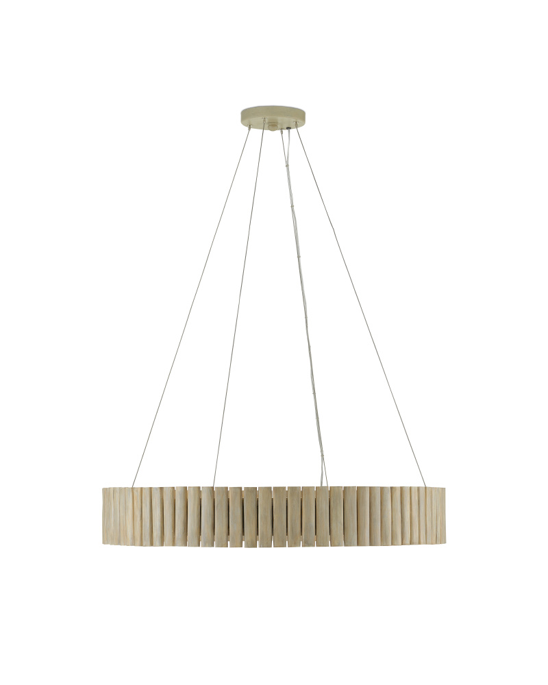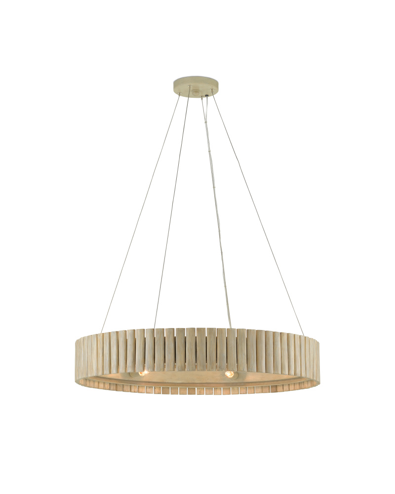 Sustainable materials and modern natural style were the inspirations for the Tetterby Chandelier. This dynamic-looking ring chandelier is made from natural bamboo in a smokewood finish for a whitewashed affect. The bamboo chandelier has aircraft style cables for suspension, which bring it the effect of floating in its surroundings. Adjustable from 22" to 94.5" with use of included chain/rod kit/cable. If your space calls for a longer drop, additional chain/rods/cable is available for purchase.