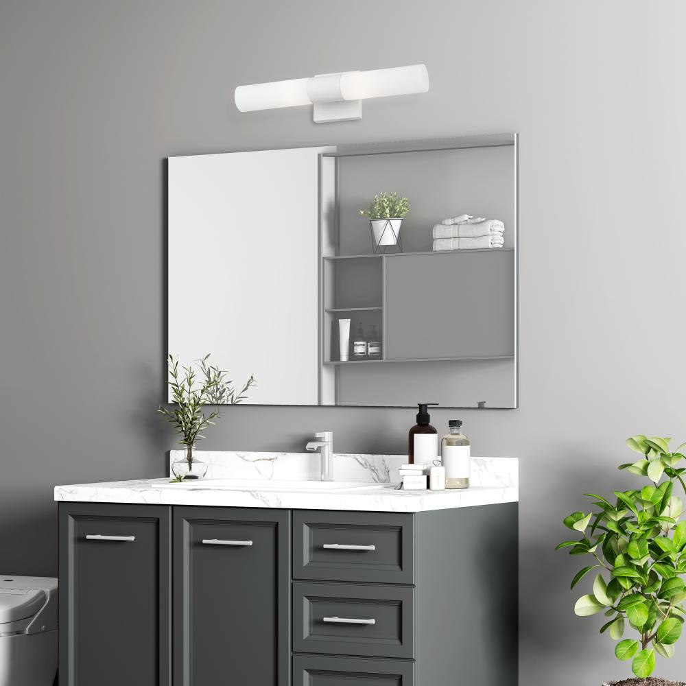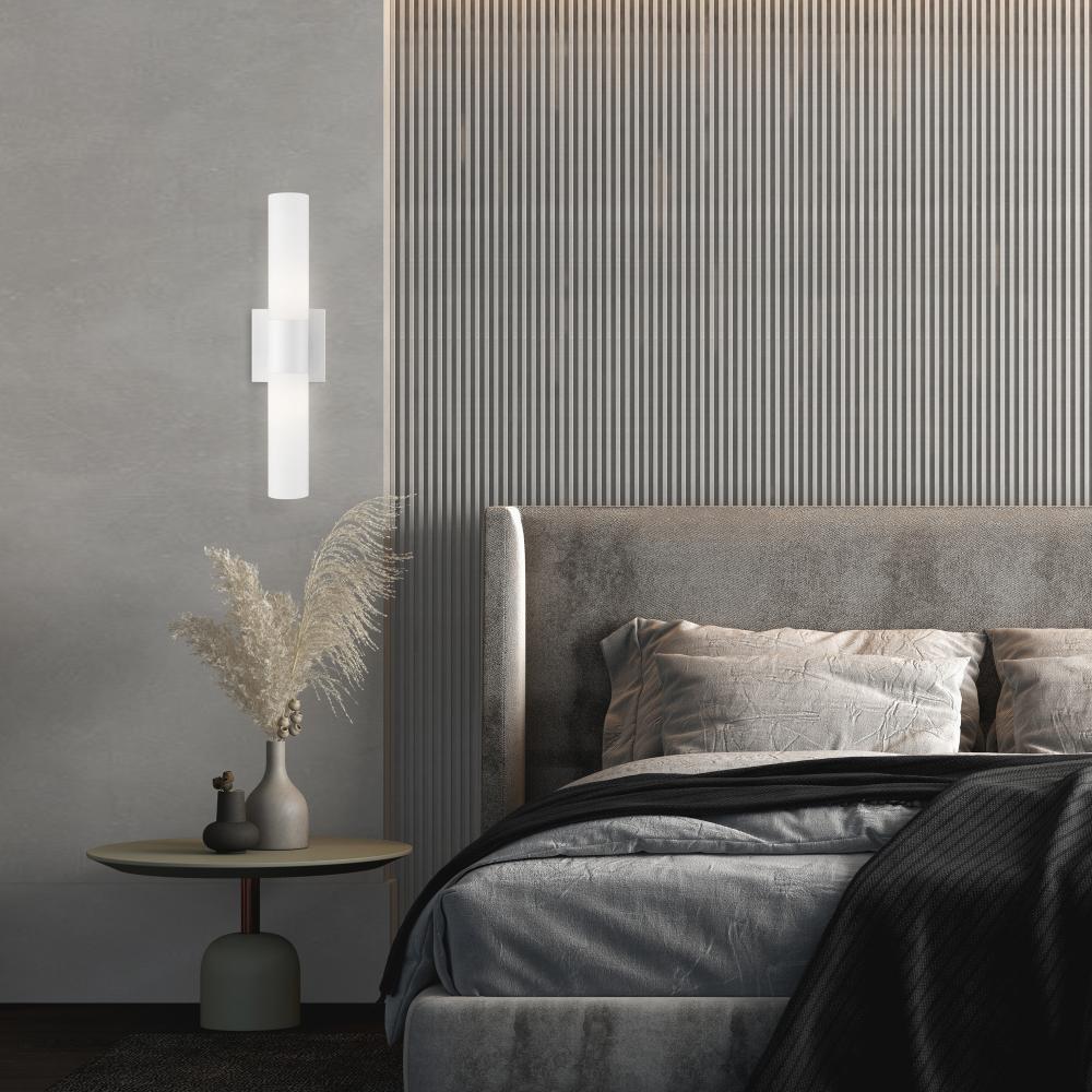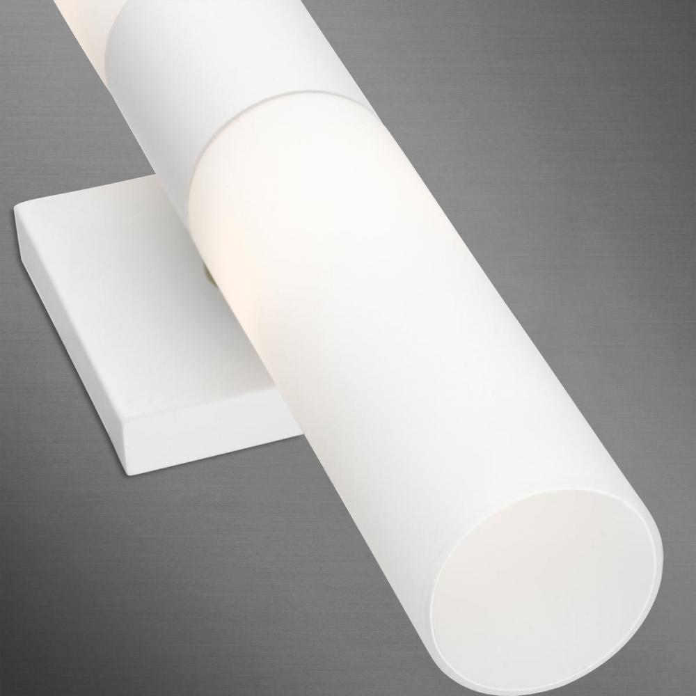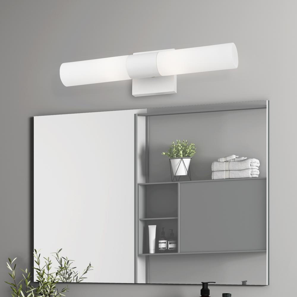 With the sleek contemporary design, the Aero bath bar casts a soft, flattering light which can be mounted horizontally or vertically. The tubular etched opal glass diffuses the light of two lamps.