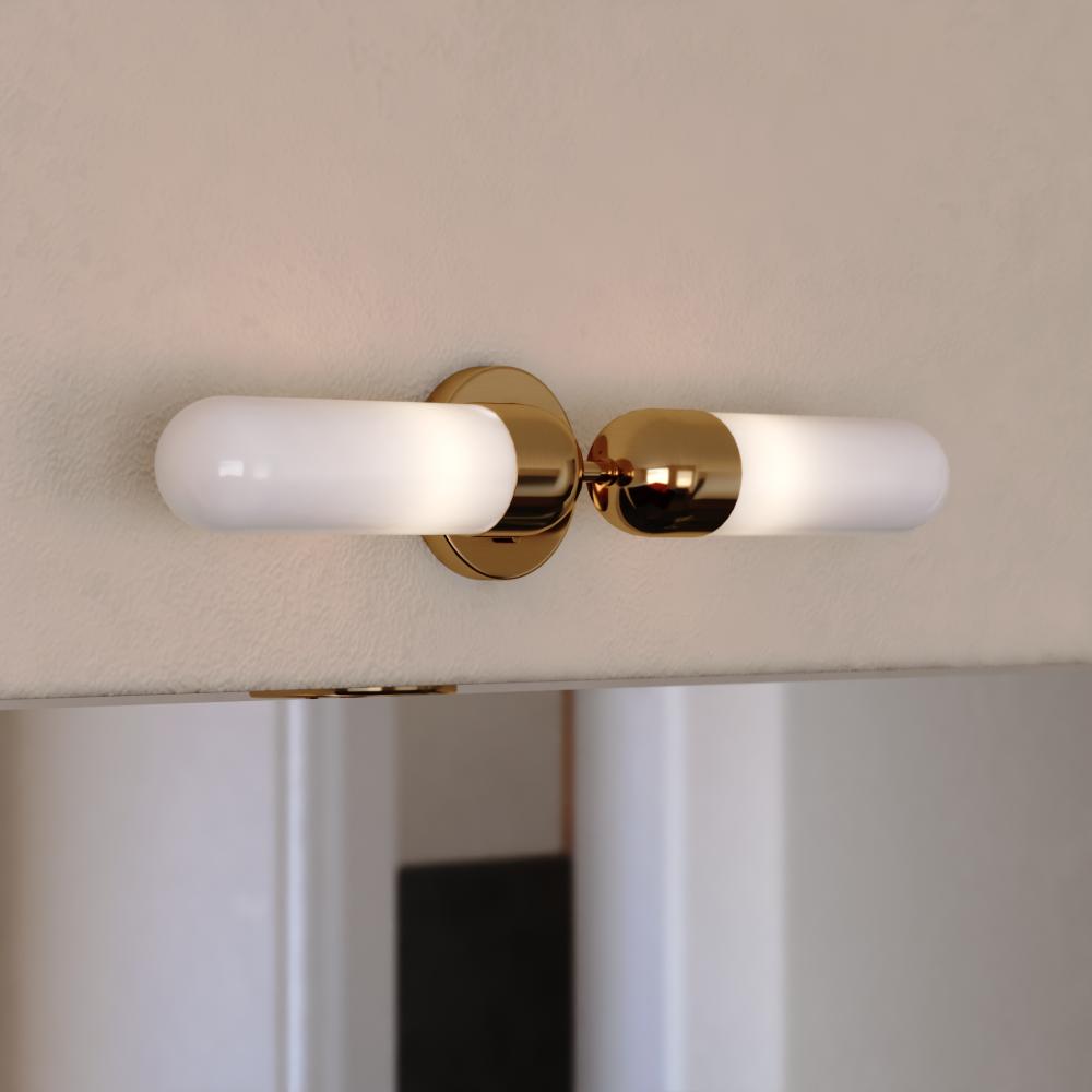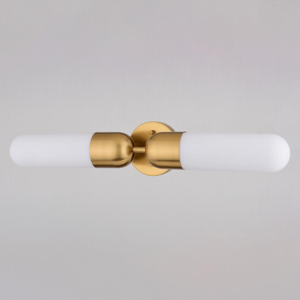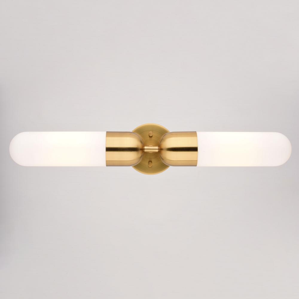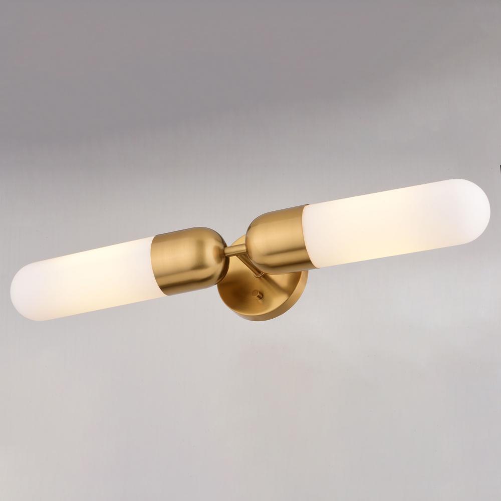 The Thalia Wall Light is a modern masterpiece a playful sophistication to your walls. Its unique pill-shaped design with warm antique gold finish and soft white glass, provides a versatile aesthetic that will complement your contemporary, mid-century modern or even transitional style. with the ability to install horizontally or vertically, the Thalia Wall Light offers customizable illumination that's both stylish and functional.
