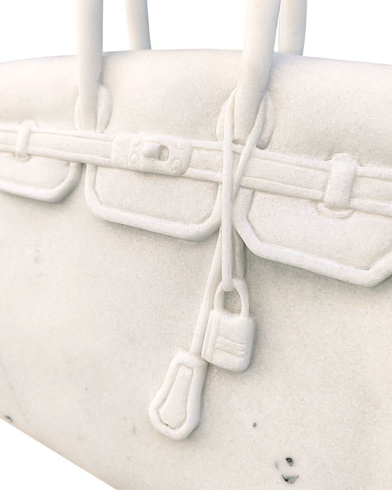 Cementing the profile of an iconic purse is The Princess, an ivory marble sculpture that will ornament a vignette with its classic notoriety. Given this white sculpture is made from natural marble, the surface of each will vary—some with more and others with less veining. This is the perfect decorative accessory for a fashion-conscious customer.