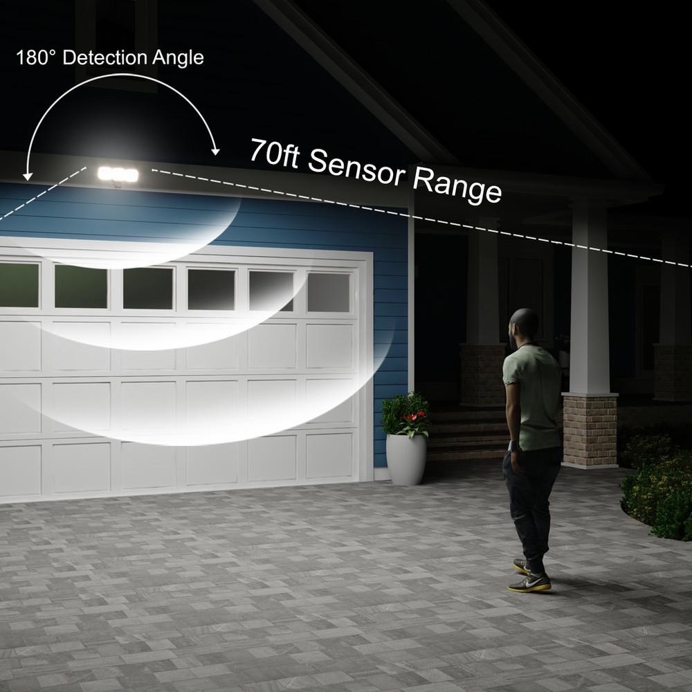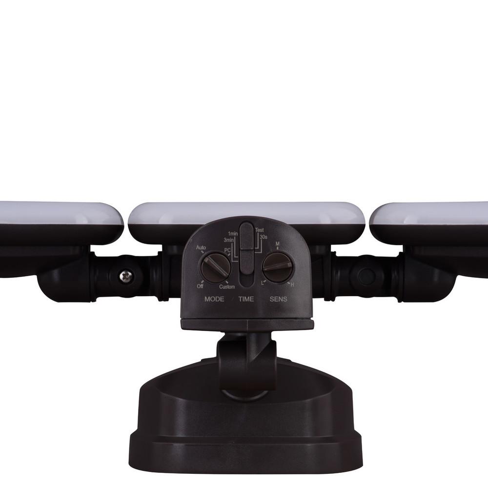 The bronze Theta 3-light LED outdoor motion sensor flood light provides low level 2700K ambient lighting throughout the night and bright 5000K high level when motion is detected. The modern light heads are fully adjustable and deliver 2200 lumens to keep your home's exterior brighter at dusk, dimmer at night, and instantly bright when motion is detected. This dualux security light expands the functionality, safety, and security of your home's outdoor spaces with bright, reliable light when and where it is needed.