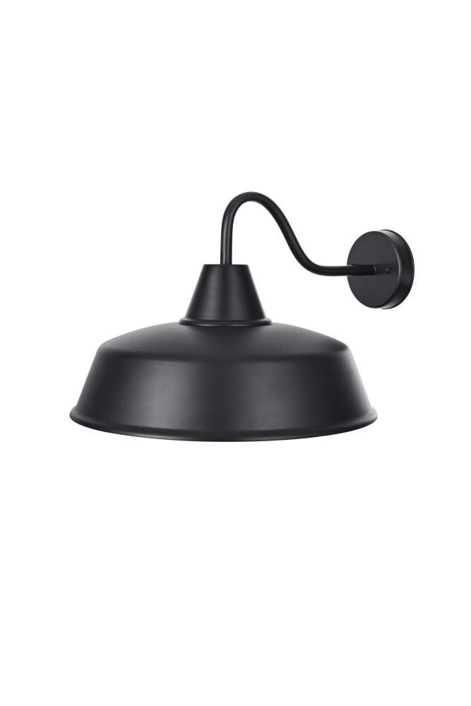 Features a wide, flared metal shade with a curved gooseneck arm, inspired by classic farmhouse and industrial lighting.