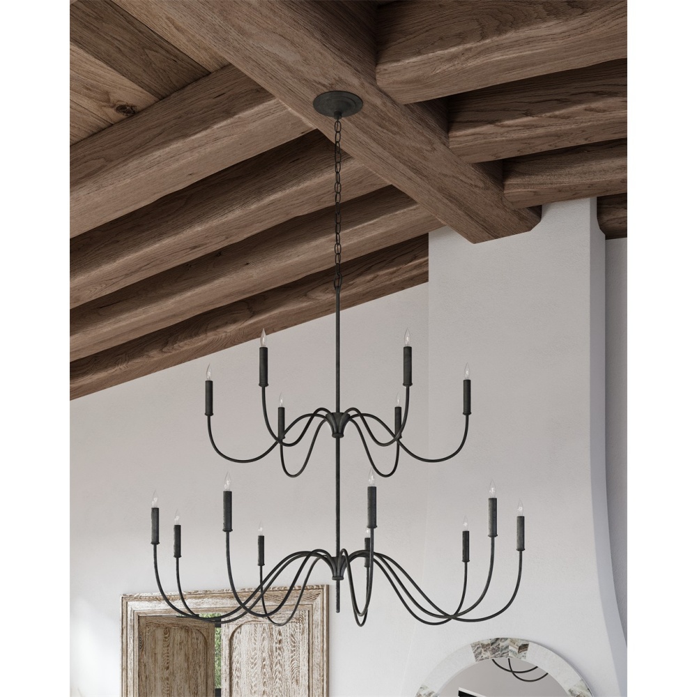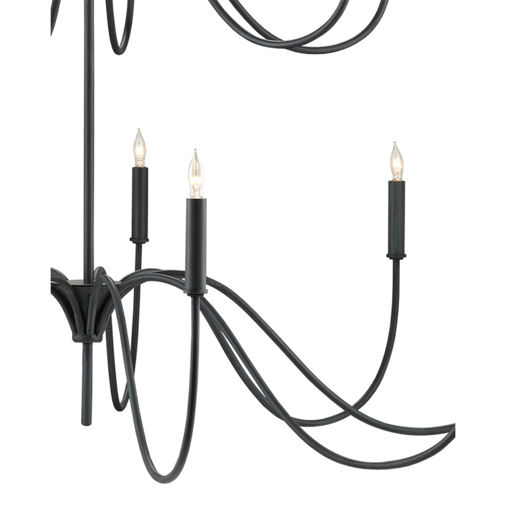 A nod to Early American style, the Tirrell Medium Chandelier has graceful arms that arc upward to hold its candle sleeves with simple dignity. The black chandelier is made of wrought iron in an antique black finish. Adjustable from 48.5" to 116.5" with use of included chain/rod kit/cable. If your space calls for a longer drop, additional chain/rods/cable is available for purchase.