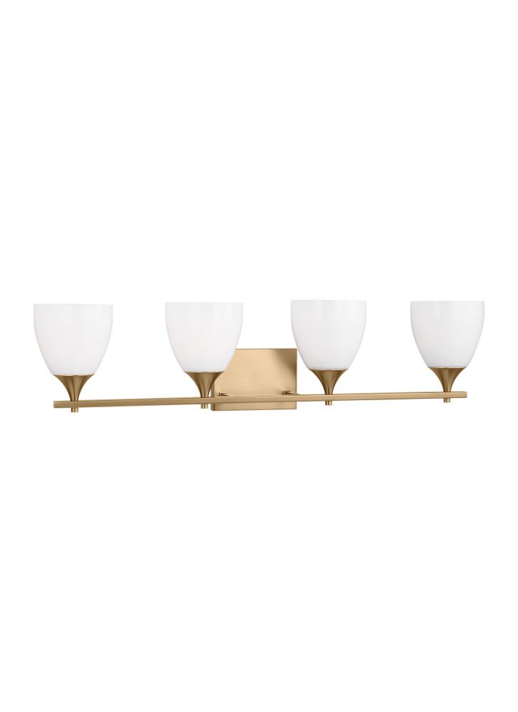 A modern take on a classic design, the Drew & Jonathan Toffino Four Light Wall / Bath Sconce breathes new life to its traditional shape with milk glass shades and striking, modern finishes. Made to coordinate across a broader range of bath hardware, the Toffino is available in four popular finishes, Brushed Steel, Chrome, Midnight Black, and Satin Brass, and looks great on its own or installed above a bathroom vanity. This fixture may be mounted in the up or down position, and is cETL listed for damp locations, making it the perfect lighting solution for any space.