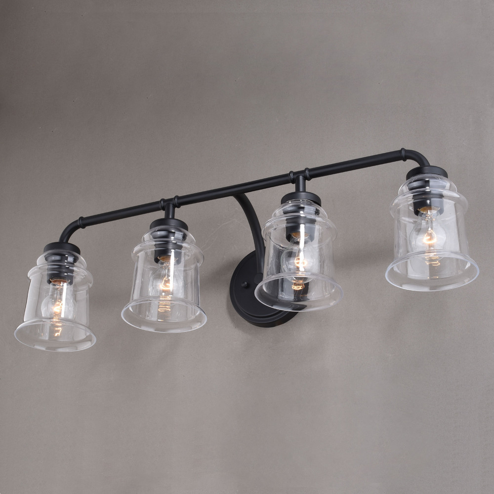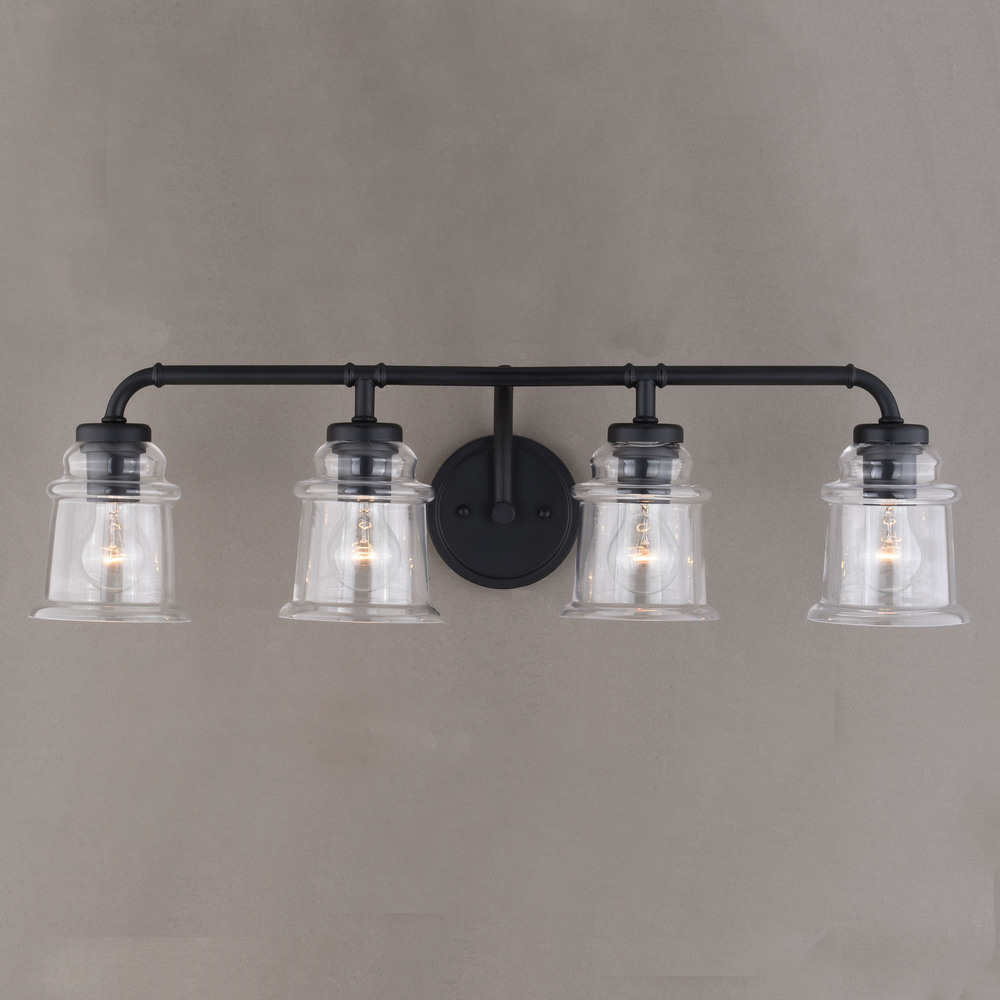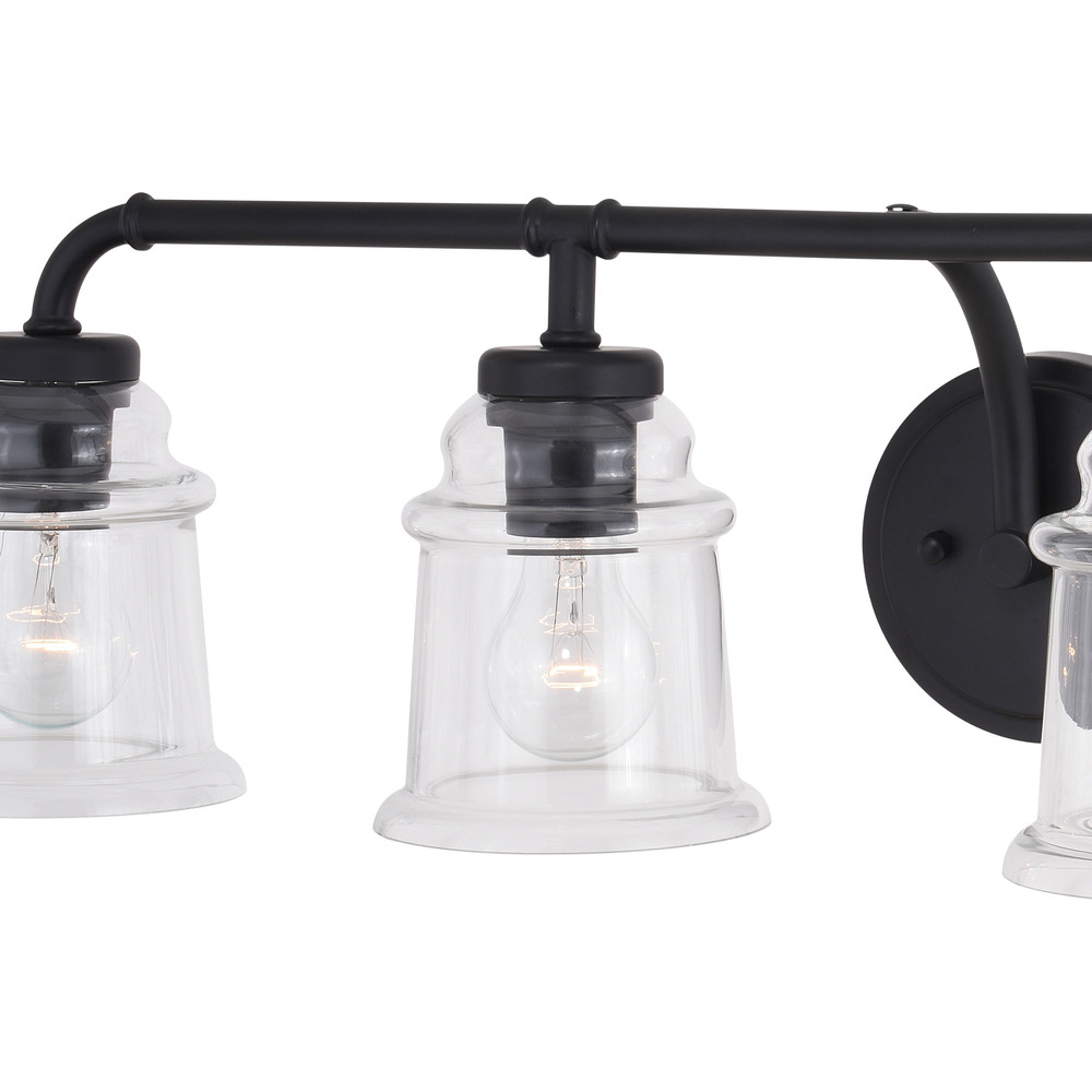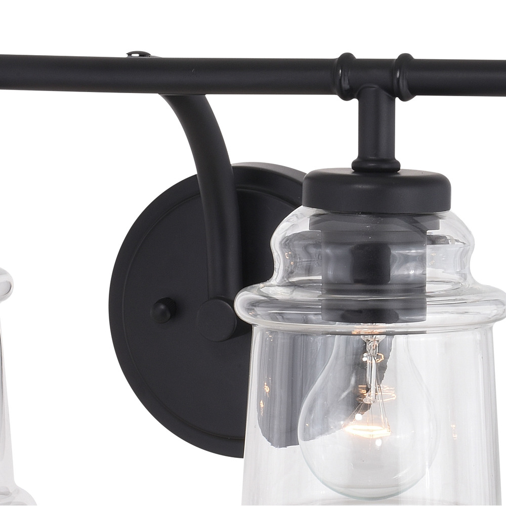 Clean retro lines define this beautiful collection called Toledo. Notes of industrial and farmhouse tradition are defined with the elegance of clear blown glass. Combine that with a vintage Edison style filament bulb to complete the look. Versatile reversible mounting option lets you install this fixture up or down. This bathroom light is perfect over large or double vanities where there is only one outlet box.