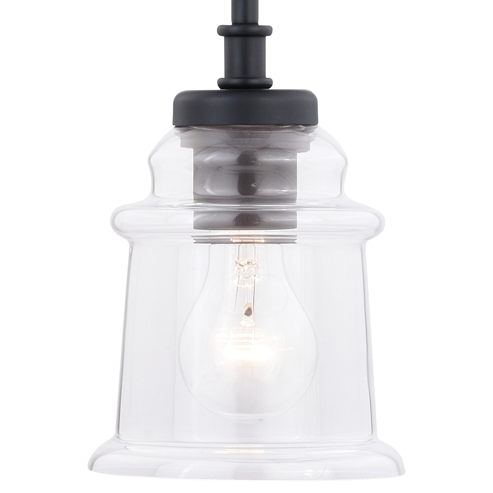 Clean retro lines define this beautiful collection called Toledo. Notes of industrial and farmhouse tradition are defined with the elegance of clear blown glass. Combine that with a vintage Edison style filament bulb to complete the look. Height is adjustable with the included down rods; compatible with sloped ceilings. Install this mini pendant individually or in a group; ideal for kitchens, dining areas, or bar areas. Height is adjustable with the included down rods; compatible with sloped ceilings.