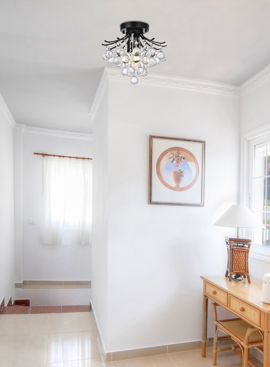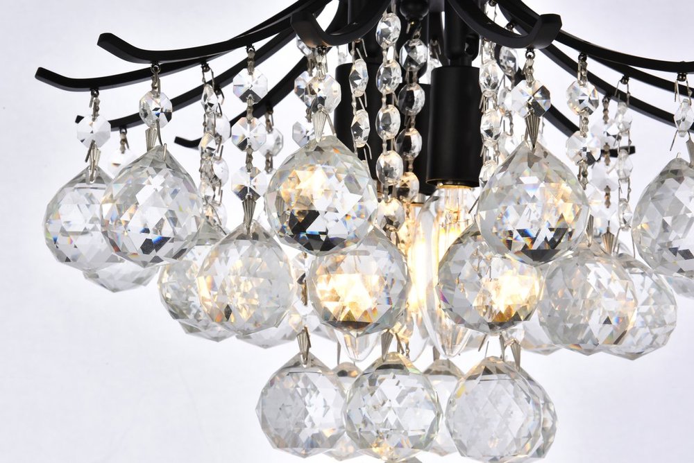 A blaze of radiance, Toureg collection flush mounts gleam with a shower of brilliant crystals. Elegant curved arms radiate from a steel frame available in black, chrome, or gold finishes. A choice of clear crystal octagons and faceted crystal balls make it a dazzling choice for a kitchen, dining room, or bedroom.