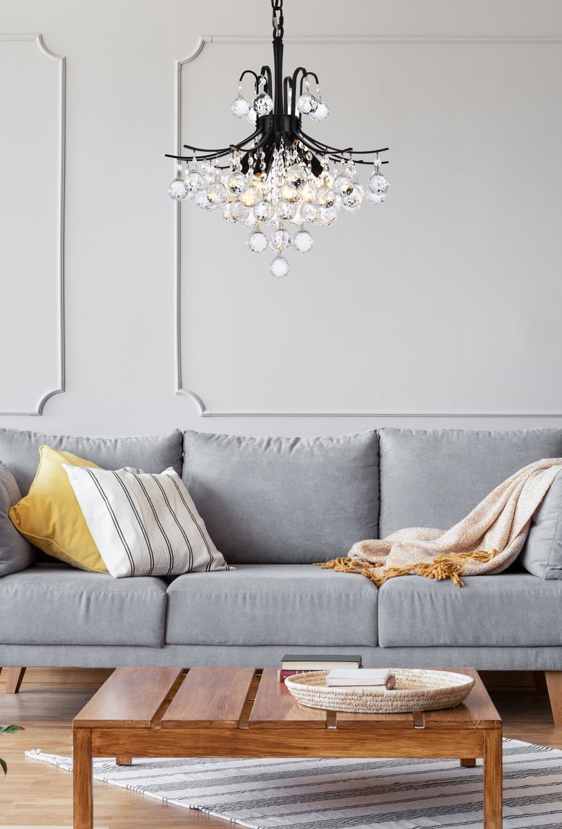 Warm, brilliant light is created by 6 e12 light bulbs. (not included)
