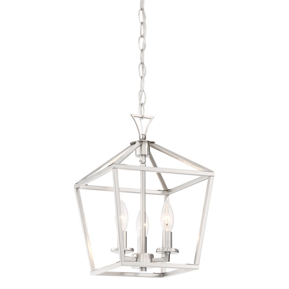 The Savoy House Townsend 3-light pendant offers up a casual open lantern look that is the perfect addition for any space inside the home. Satin nickel finish. Pendants are very versatile and can be used in many different indoor spaces, including kitchens, foyers, offices, great rooms, bedrooms and even bathrooms. Bulbs not included. Try using stylized bulbs for a different look! The satin nickel finish can be matched with nickel hardware or mixed with hardware in other finishes. Townsend is a great option for adding a bold touch to rooms in transitional, farmhouse or classic style. When you choose a Savoy House lighting fixture, you can be certain you've selected a piece that will withstand the test of time.