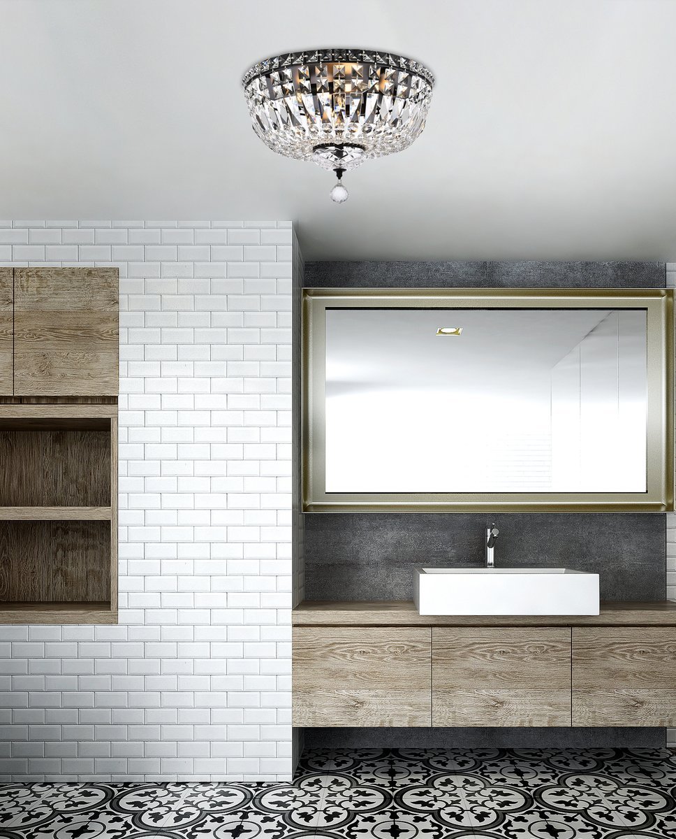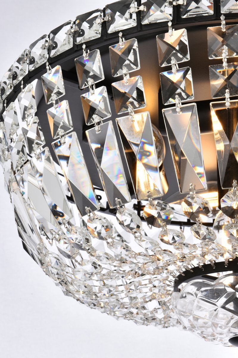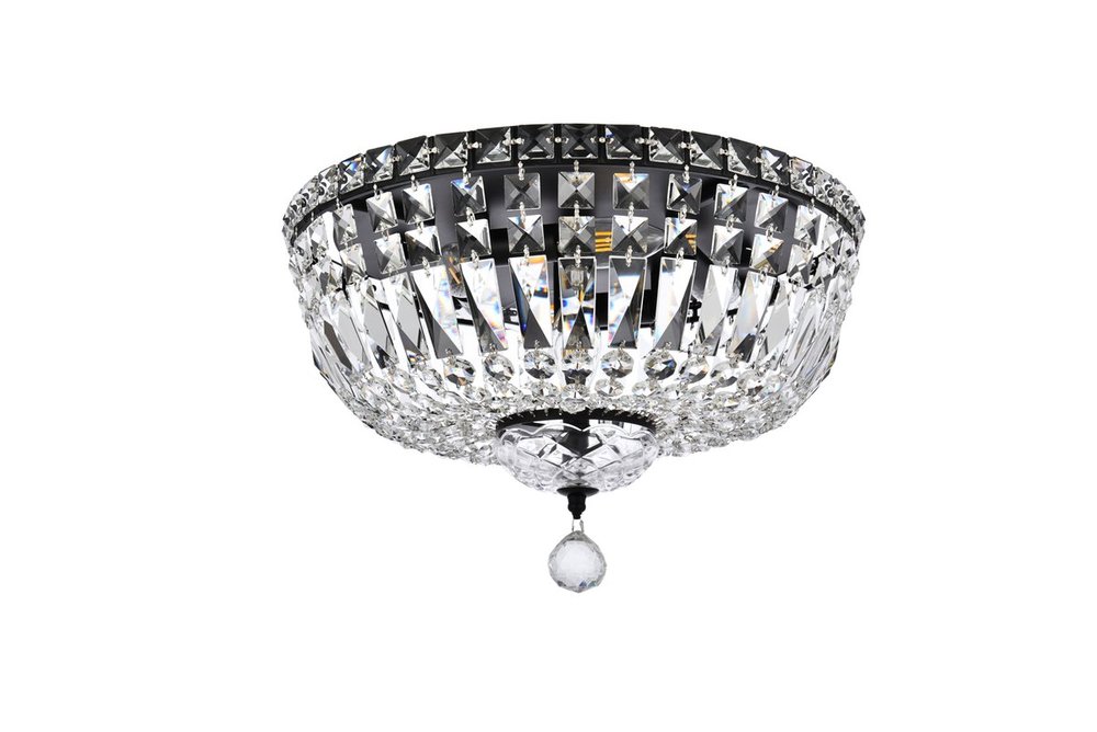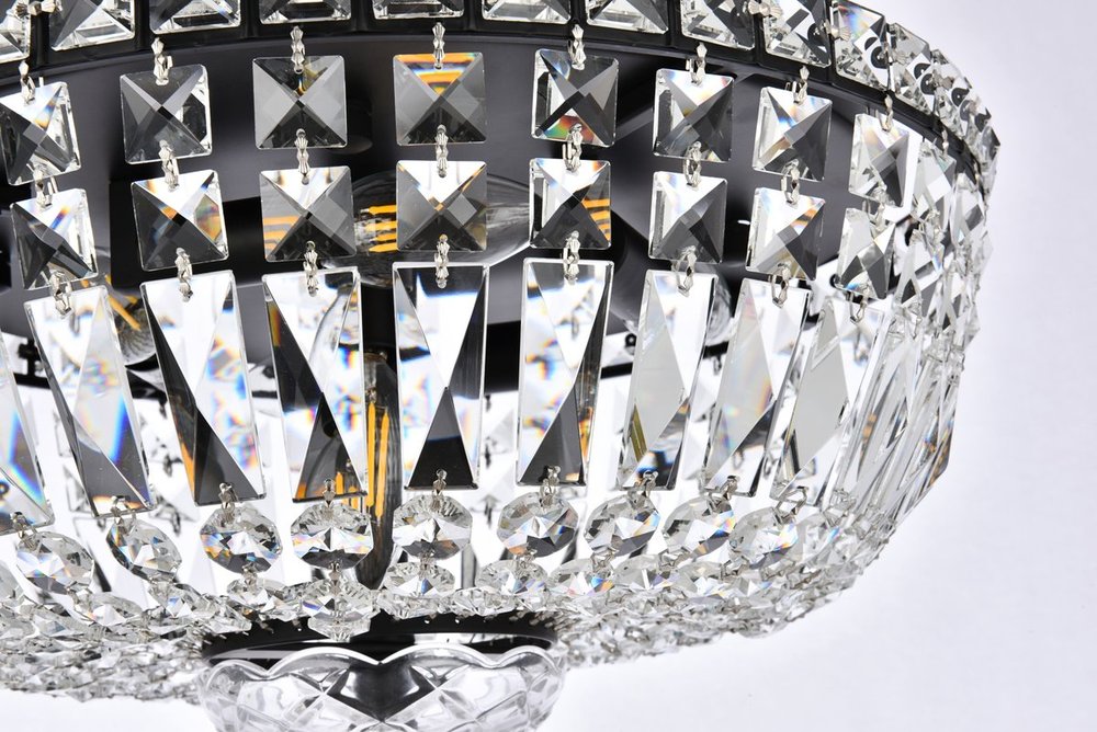 The Tranquil collection of flush-mount fixtures is everything you could imagine in the most decadent of lighting for your home. Captivating and serene, the radiance of this masterpiece will make you feel like a fireball of lustrous sparkle enraptures you. Black-finished bands of exquisite emerald-cut and baguette crystals are finished off with a mesmerizing spherical gem. These hypnotizing fixtures will add a touch of panache to your kitchen, dining room, foyer, or bedroom.