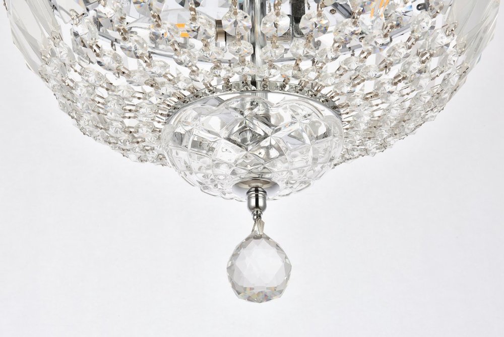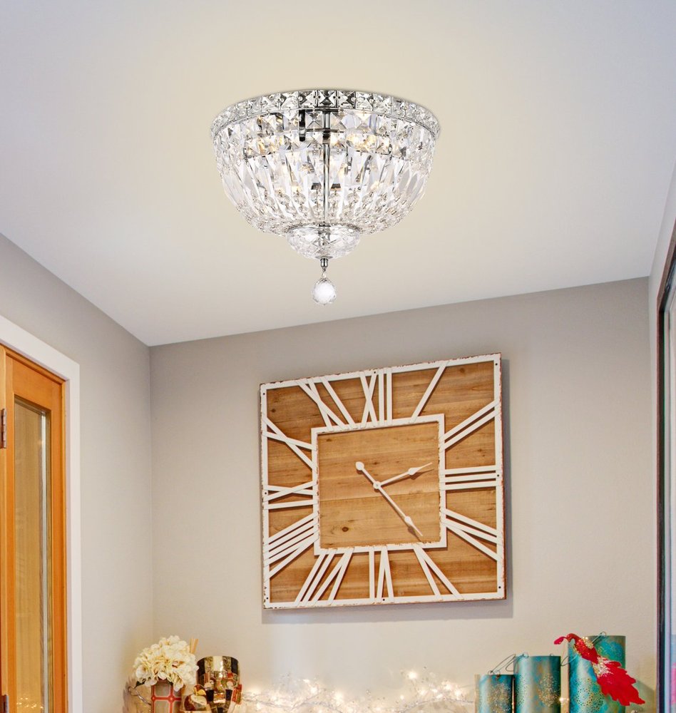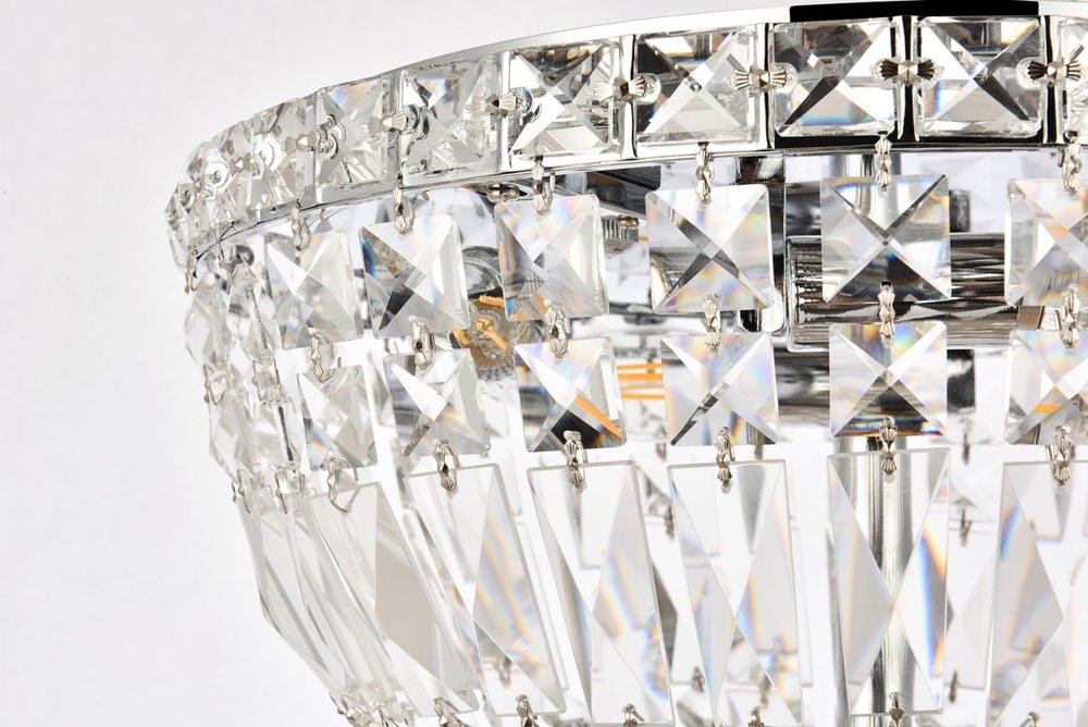 The Tranquil collection of flush-mount fixtures is everything you could imagine in the most decadent of lighting for your home. Captivating and serene, the radiance of this masterpiece will make you feel like a fireball of lustrous sparkle enraptures you. Chrome-finished bands of exquisite emerald-cut and baguette crystals are finished off with a mesmerizing spherical gem. These hypnotizing fixtures will add a touch of panache to your kitchen, dining room, foyer, or bedroom.