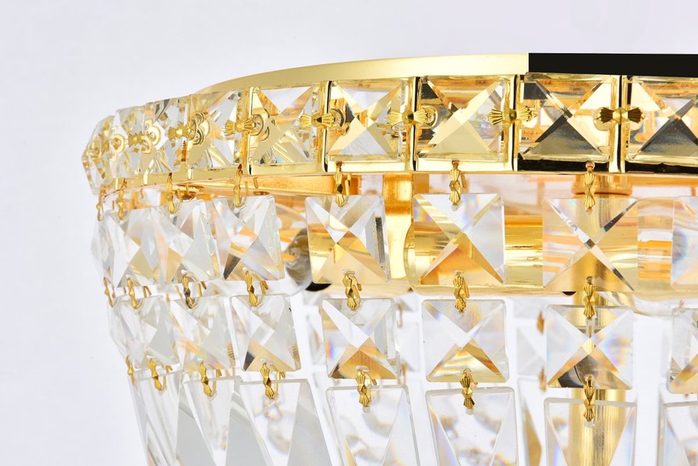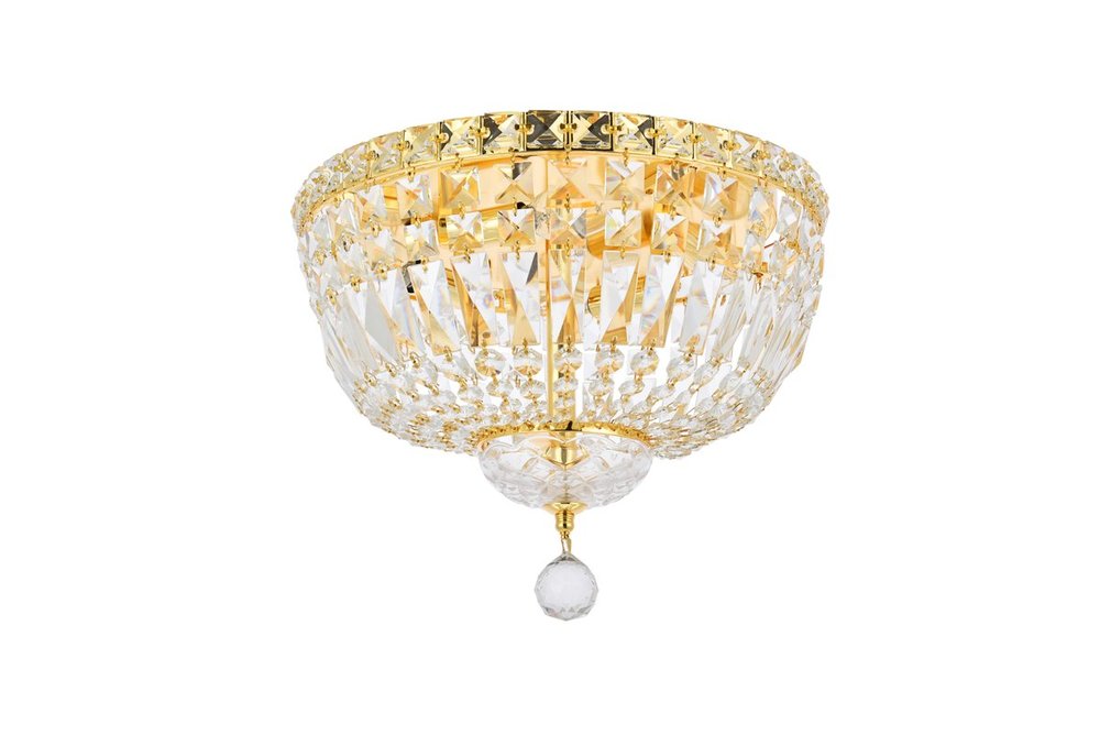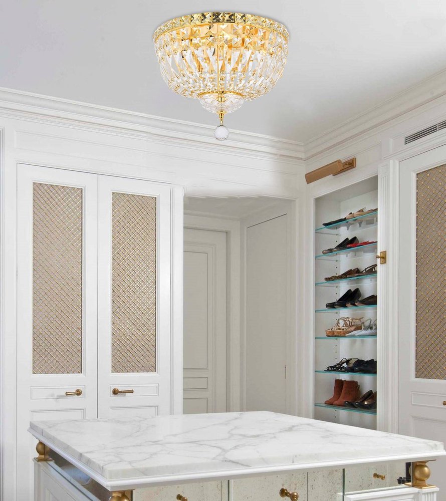 The Tranquil collection of flush-mount fixtures is everything you could imagine in the most decadent of lighting for your home. Captivating and serene, the radiance of this masterpiece will make you feel like a fireball of lustrous sparkle enraptures you. Gold-finished bands of exquisite emerald-cut and baguette crystals are finished off with a mesmerizing spherical gem. These hypnotizing fixtures will add a touch of panache to your kitchen, dining room, foyer, or bedroom.