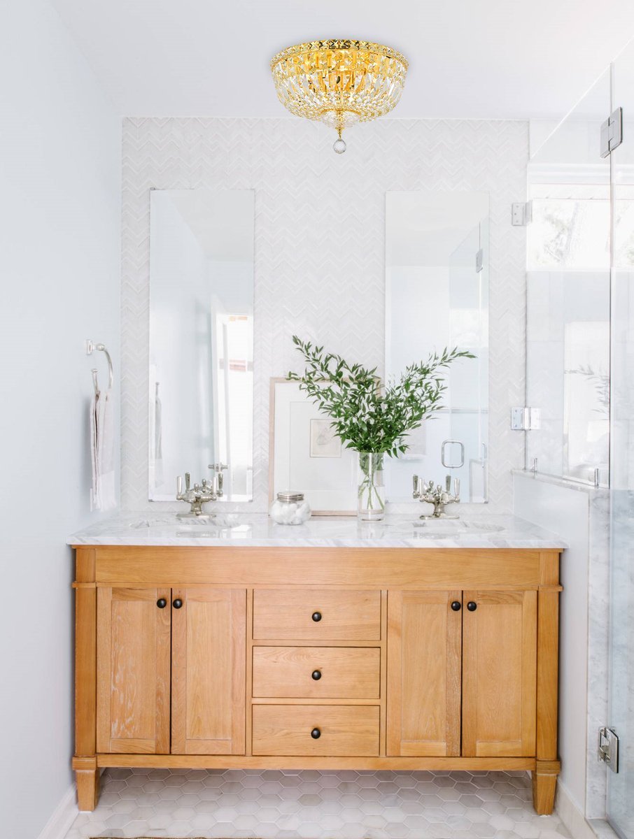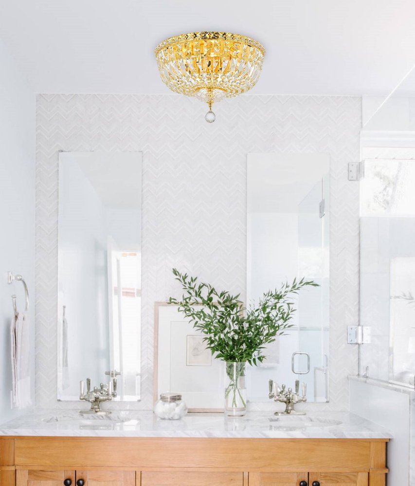 The Tranquil collection of flush-mount fixtures is everything you could imagine in the most decadent of lighting for your home. Captivating and serene, the radiance of this masterpiece will make you feel like a fireball of lustrous sparkle enraptures you. Gold-finished bands of exquisite emerald-cut and baguette crystals are finished off with a mesmerizing spherical gem. These hypnotizing fixtures will add a touch of panache to your kitchen, dining room, foyer, or bedroom.