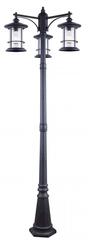 The A Treehouse, IOL156BK, 3 Lt Outdoor Post Light, Clear Glass, 100W Type A, 28 .5 IN W x 82 IN H is designed to complement any interior decor, making it a perfect choice for contemporary spaces