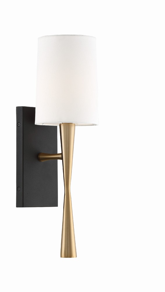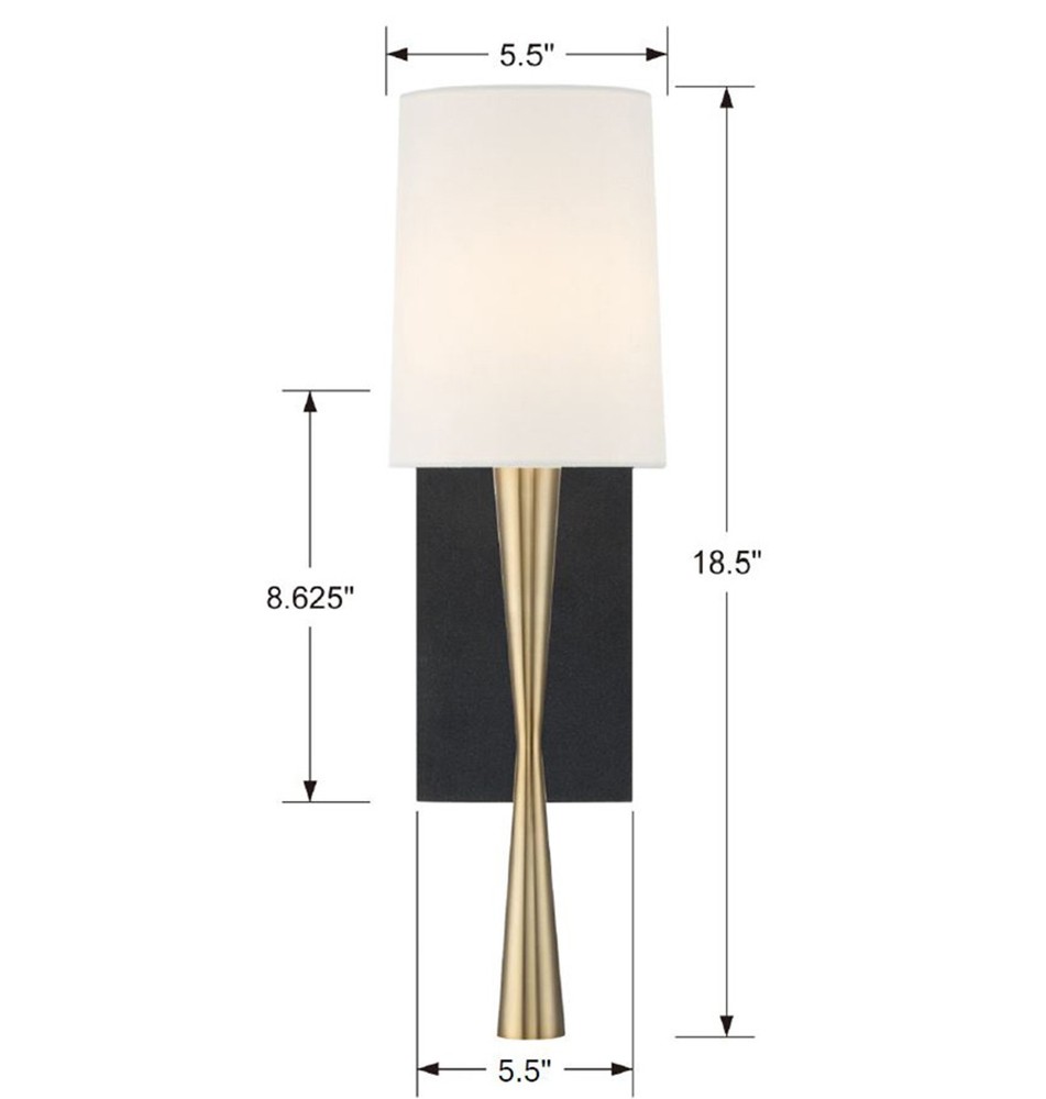 Both timeless and transitional, the minimalist design makes the Trenton ideal for any space in the home. Sleek white silk shade and slender hourglass metal tail makes an immediate impression in any room. Mounted on a rectangular back plate, this light from the Trenton Collection is a fresh twist on a classic silhouette.