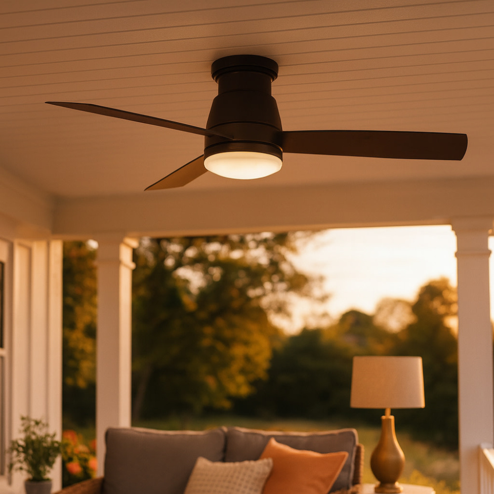 Trey features a sleek flush mount design that packs a powerful punch. Its transitional style comes equipped with robust blades that seamlessly pair performance and precision. Trey is offered in versatile finish options, and its integrated LED lighting and DC motor technology deliver excellent energy efficiency. A timeless etched opal light kit completes the look for a refined appearance. Trey is so versatile; it can be used for both indoor and outdoor spaces. Blades are included with every fan.