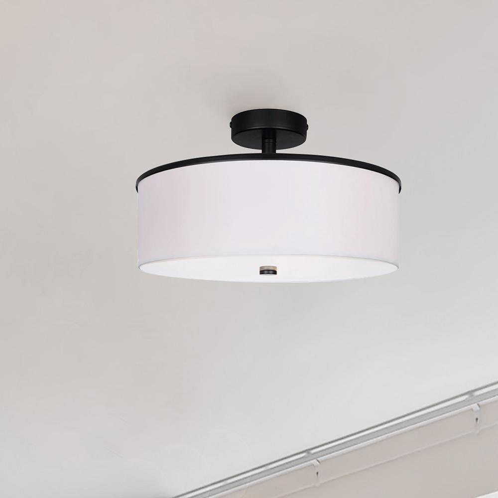 Tristan 17.75 in. 3-Light 60-Watt Modern Matte Black Semi-Flush Mount with White Fabric Shade