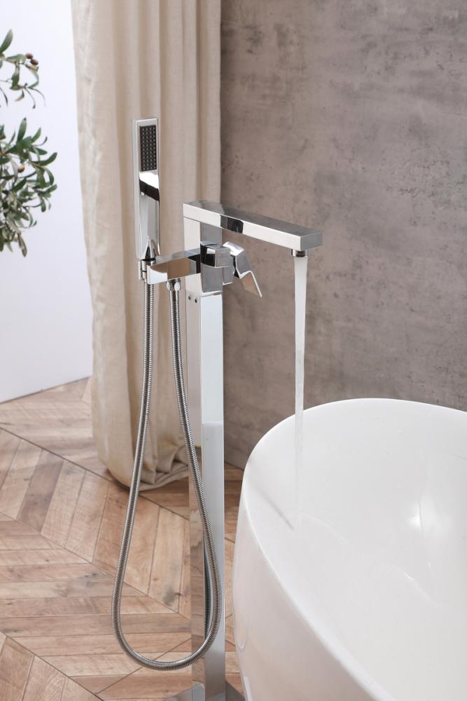 Our floor-mounted bathtub faucet brings a touch of space-saving elegance to your bathroom.
