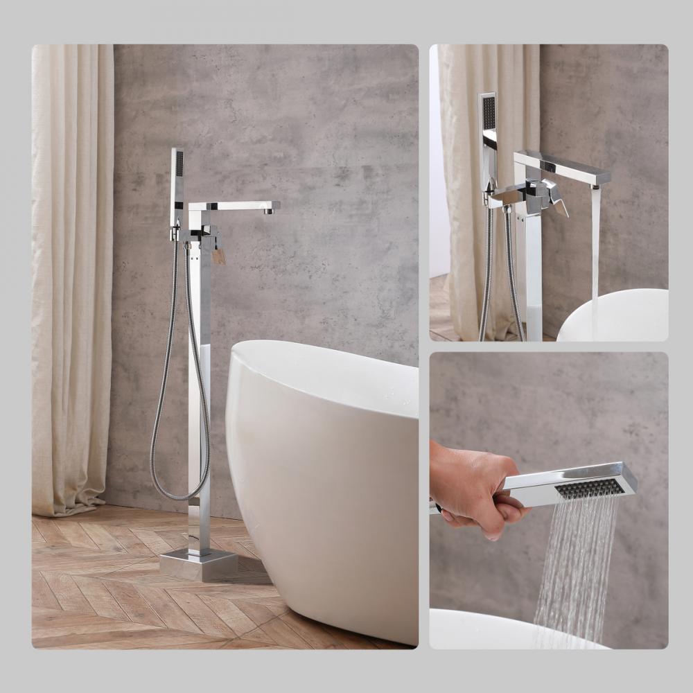 Indulge the ultimate in bath versatility with our bathtub faucet, complete with a convenient 35-inch long hand shower, bringing flexibility to your bathing routine. Choose between a soothing bath or a targeted hand shower experience, catering to your preferences. Crafted from premium stainless steel, our faucet not only adds a modern aesthetic to your bathroom but is also corrosion-resistant and built to last. With included supply lines, installation becomes hassle-free, saving you time and effort. The faucet's handy diverter lever enables effortless switching between the faucet and hand shower, allowing for a personalized bathing experience. Our bathtub faucet is UPC and IAPMO certified, ensuring lead-free materials and top-notch quality for your safety and satisfaction. Enjoy a maximum flow rate of 5.6 gallons per minute at 80 psi, offering robust water flow while conserving water and reducing utility costs. Embrace the elegance of our floor-mounted bathtub faucet, a space-saving alternative that exudes contemporary luxury, standing gracefully on your bathroom floor and complementing your decor with a touch of sophistication.