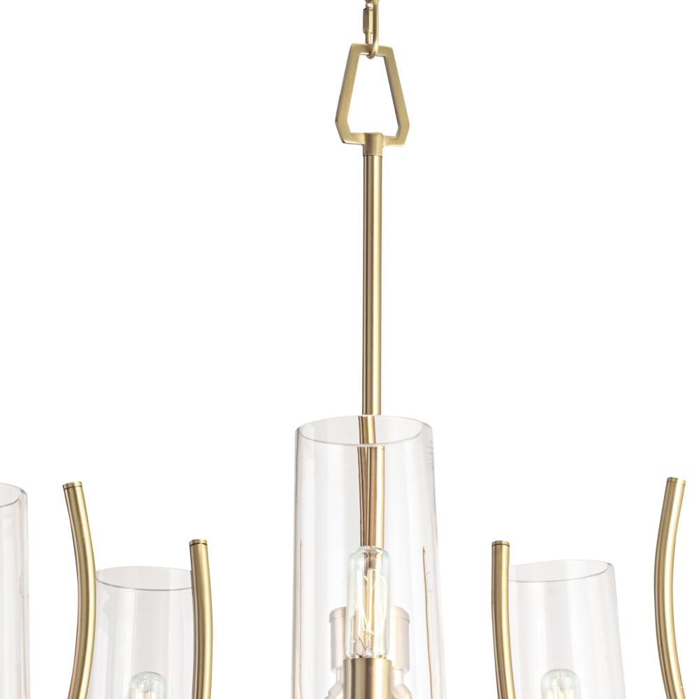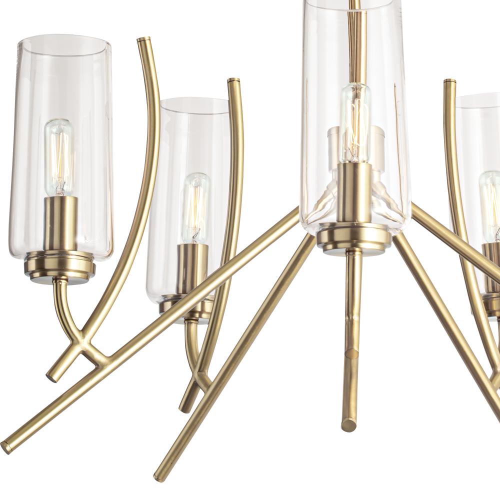 Inspired by organic shapes of mid-century design, has graceful curved arm and tapered glass