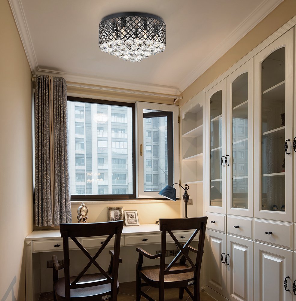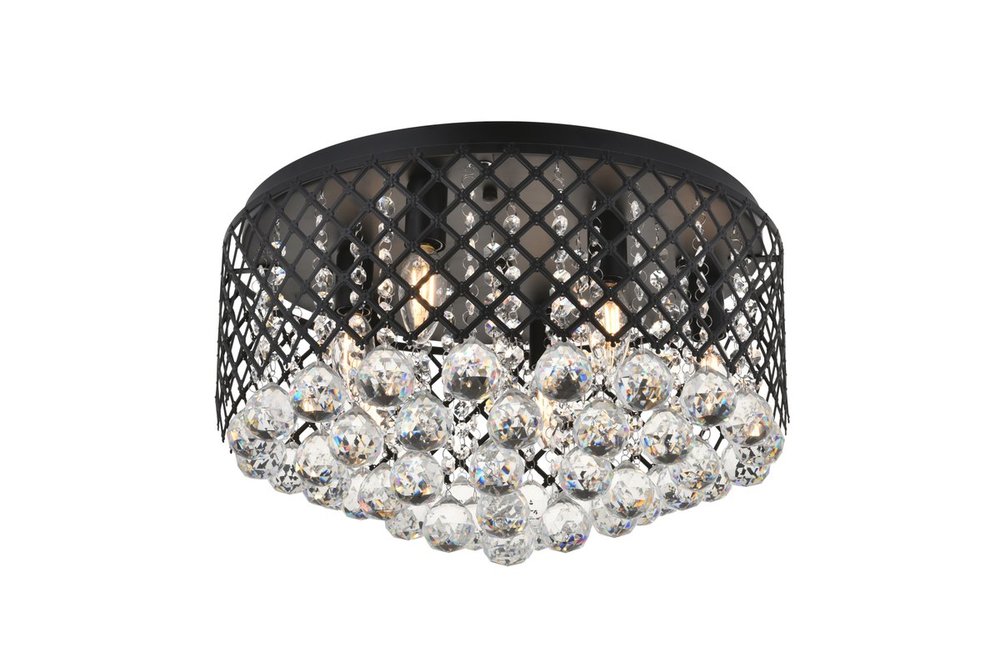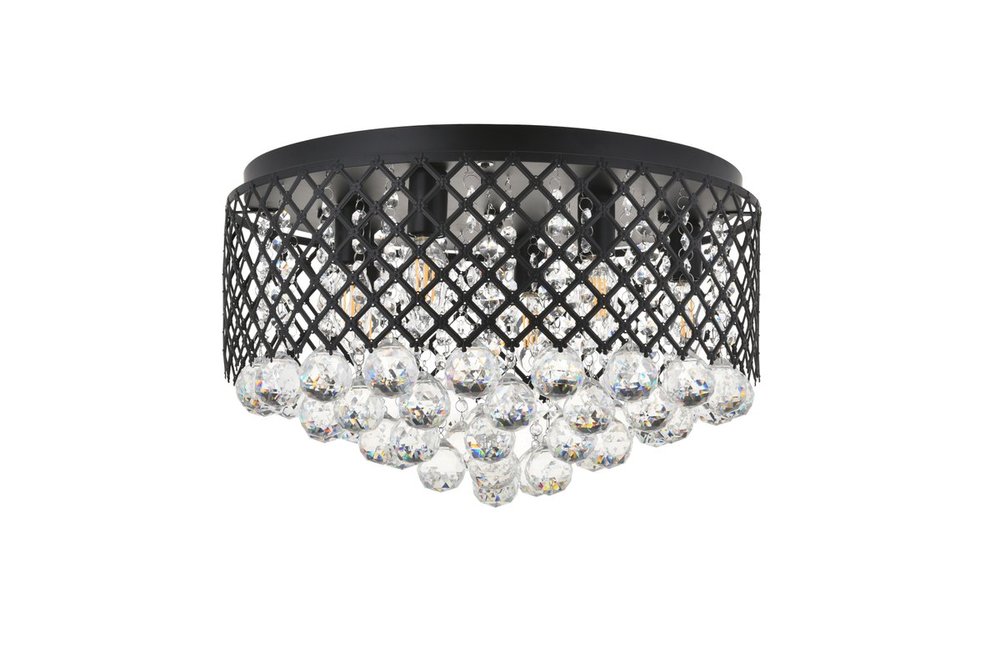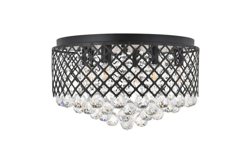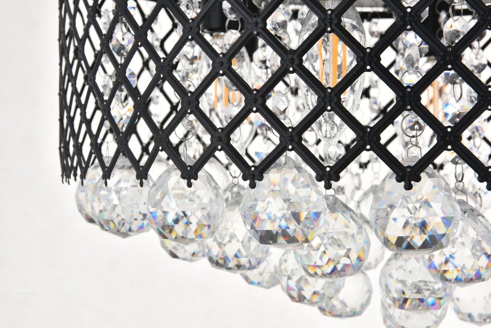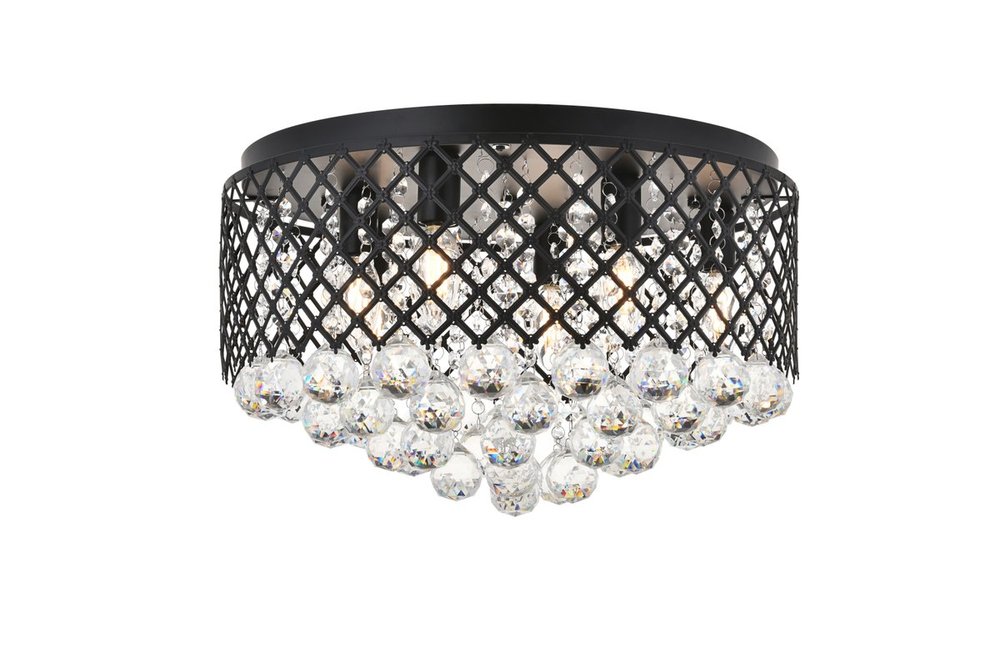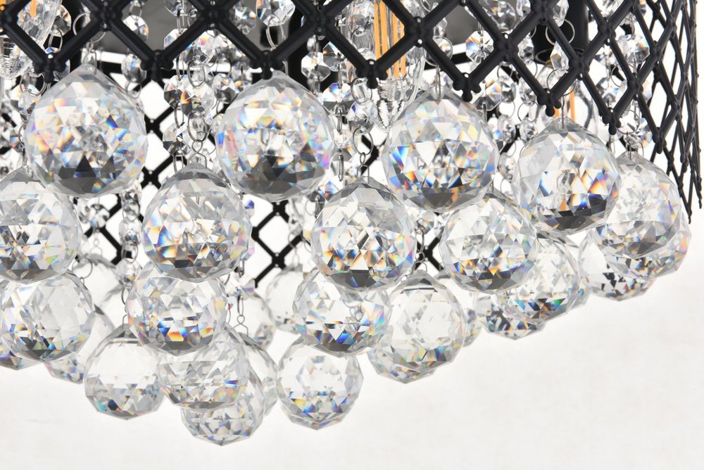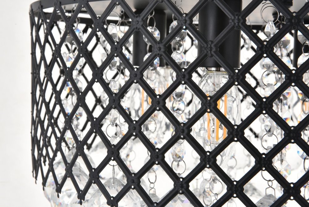 Enjoy the shimmering beauty of the Tully flush mount in a Mattee black finish. The elegant lattice metal curtain allows for the hanging crystals to play and dance around the illuminating light, with larger crystals at the base peeking out to say hello. Lights on or off, this flush mount will surely make quite a statement in your home!